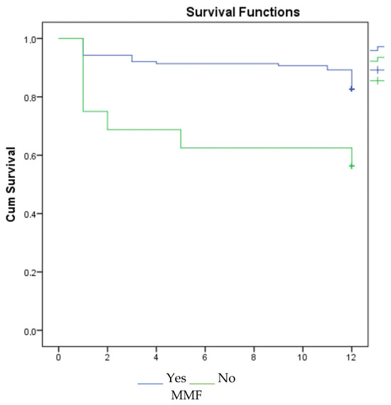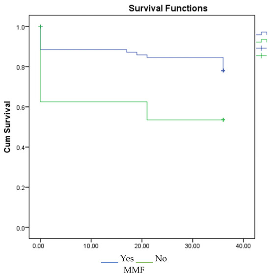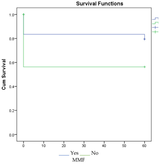 According to the 1-, 3-, and 5-year survival results (for graft), renal survival was longer in the mycophenolate mofetil (MMF) users, and renal survival was adversely affected in patients with acute rejection (Figure 1, Figure 2 and Figure 3).