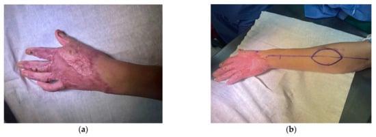 - Rehim, S.A.; Kowalski, E.; Chung, K.C. Enhancing Aesthetic Outcomes of Soft-Tissue Coverage of the Hand. Plast. Reconstr. Surg. 2015, 135, 413e–428e. [Google Scholar] [CrossRef] [PubMed]