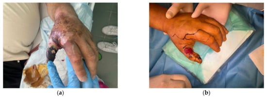 - Elsaftawy, A.; Jabłecki, J. Unsuccesful Replantation of Metacarpal Hand after Venous Thrombosis—Case Report. Pol. Prz. Chir. Pol. J. Surg. 2013, 85, 721–726. [Google Scholar] [CrossRef]