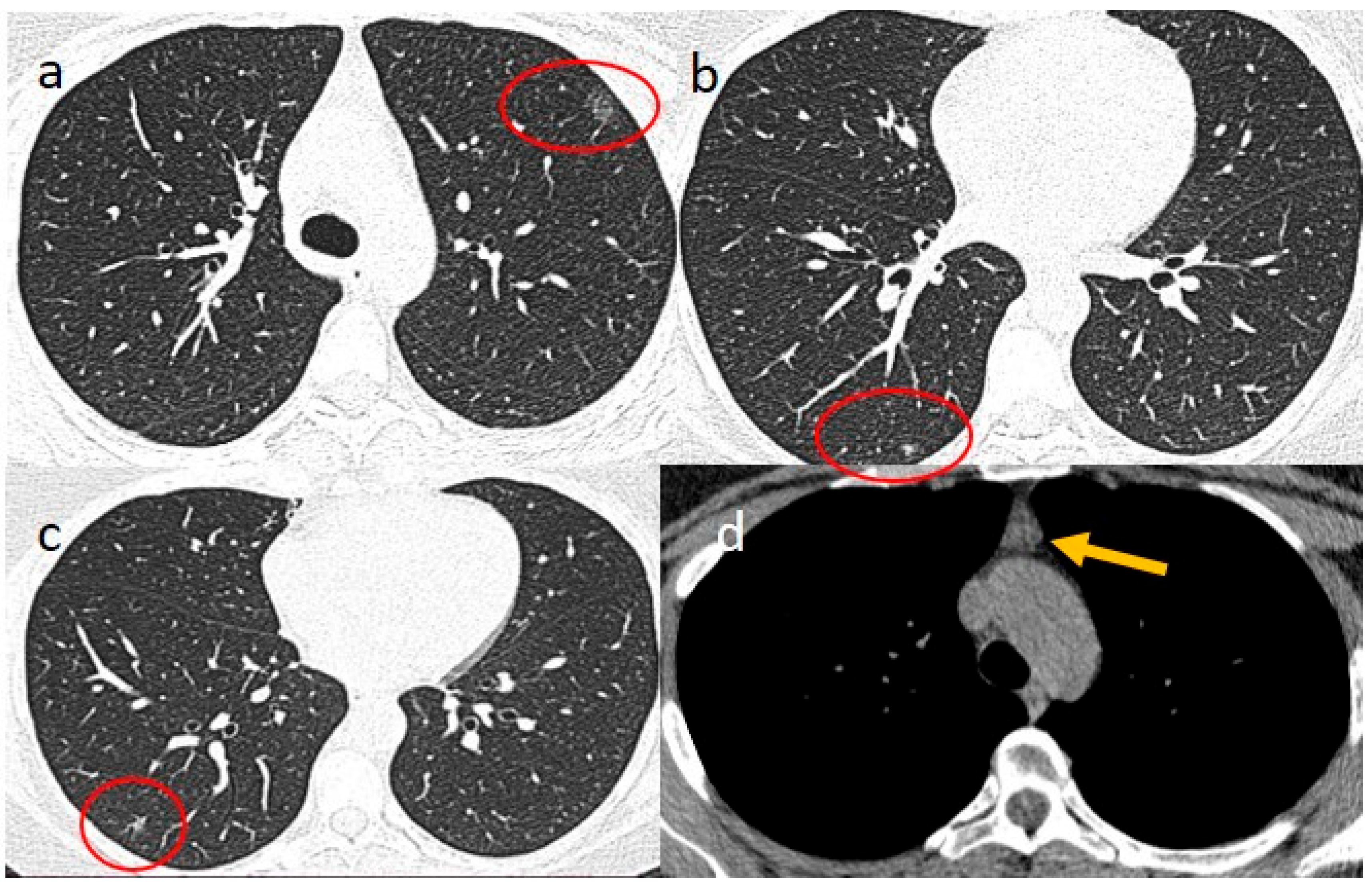 - Lu, G.; Zhang, P.; Ricciardi, S.; Wang, R.; Wang, C.; Qian, K.; Zhang, Y. Incidental mediastinal masses detected on chest computed tomography scans during the COVID-19 pandemic. Eur. J. Cardio-Thorac. Surg. 2025, 67, ezaf140. [Google Scholar] [CrossRef]