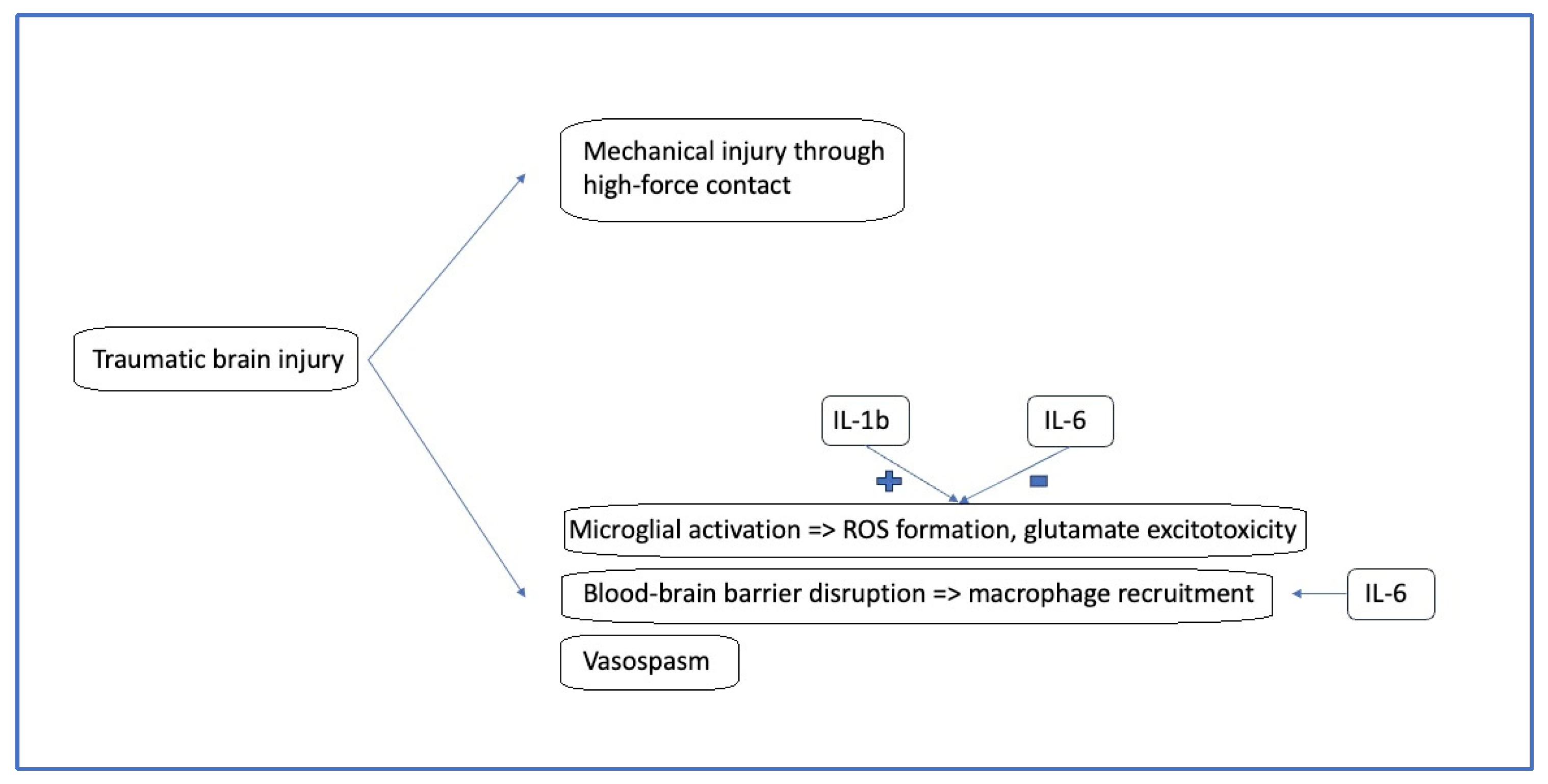 Neuroinflammation is a core element of secondary brain damage following TBI. This process is regulated by several mediators, including ILs, which seem to play an important role in the pathophysiology of TBI.