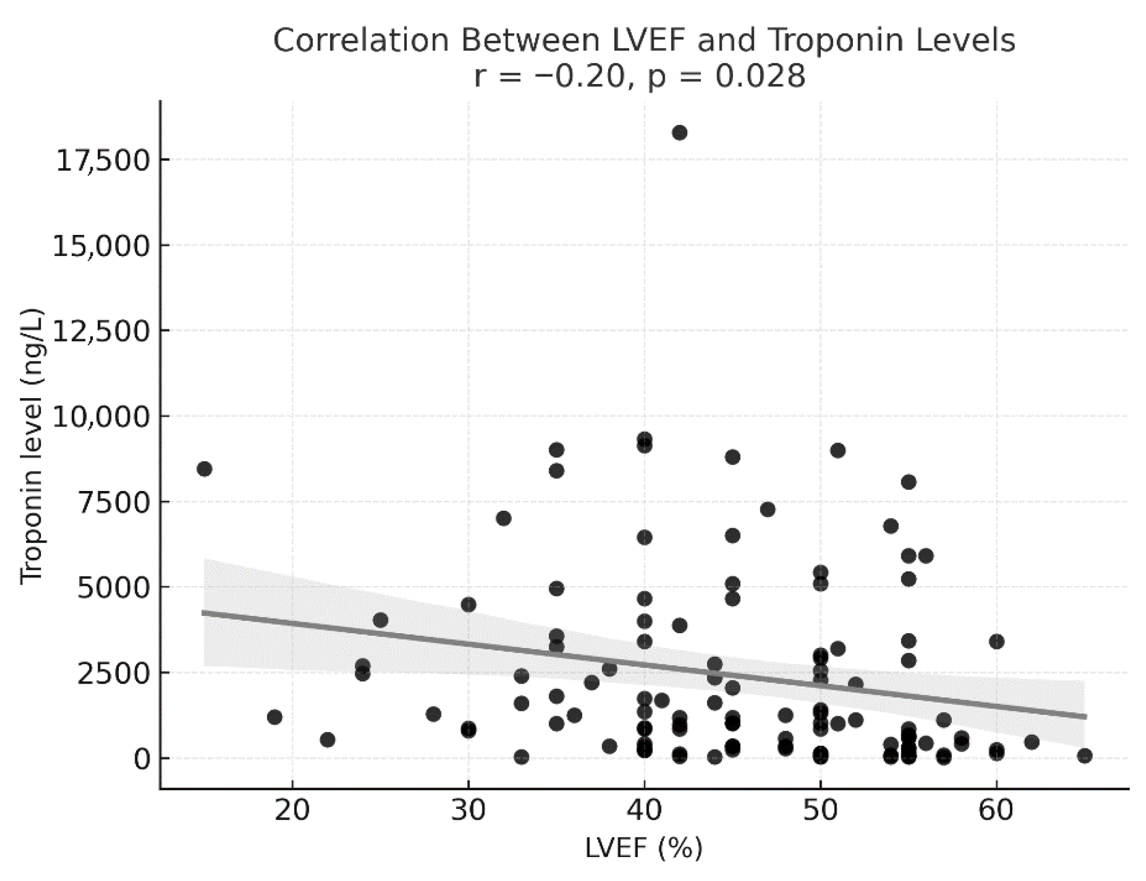 | Troponin, ng/L (median, IQR) | 1186 (340–3400) |