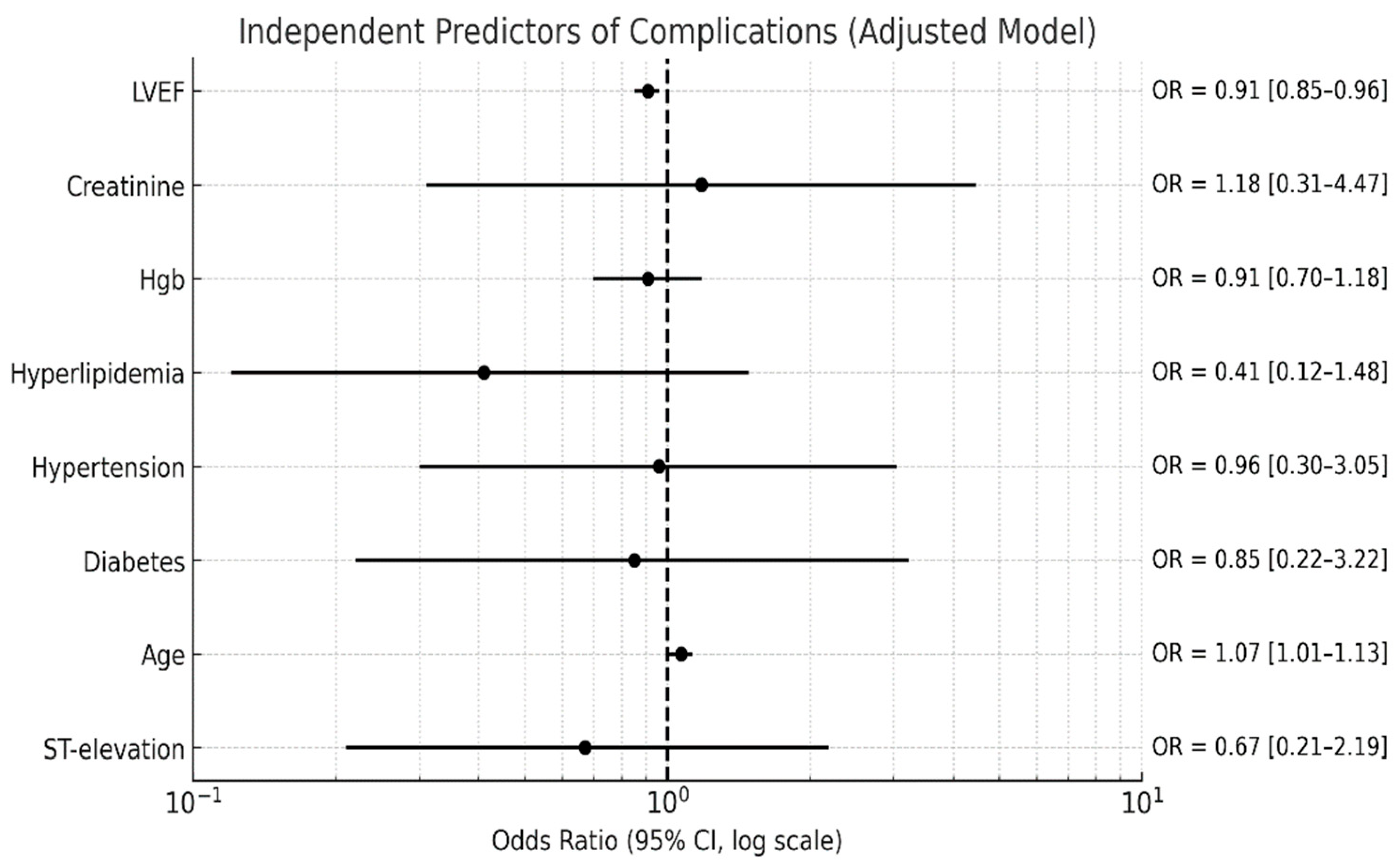 | Complications, HF and arrhythmia (n, %) | 16 (27) | 5 (8) | 0.01 * |