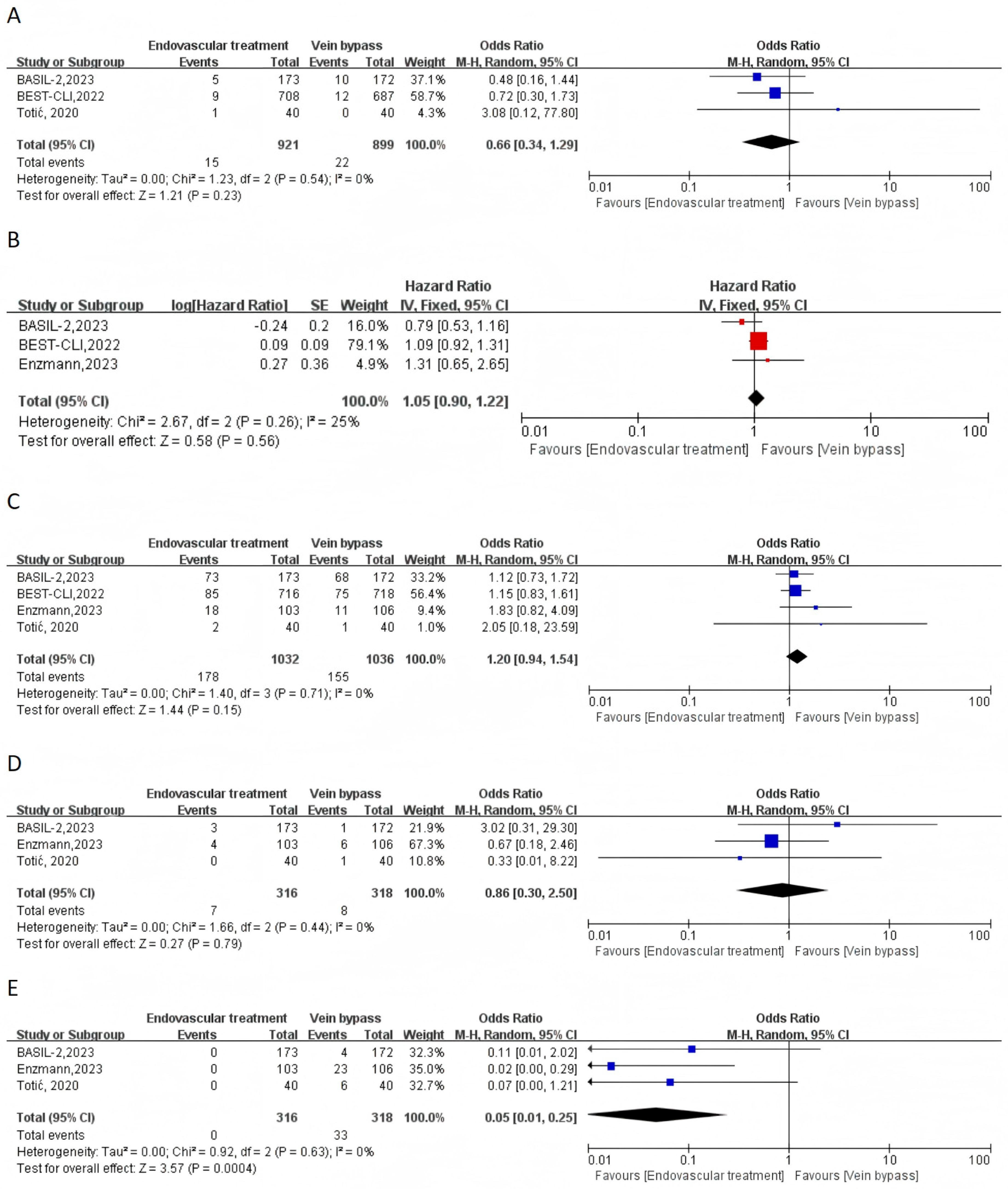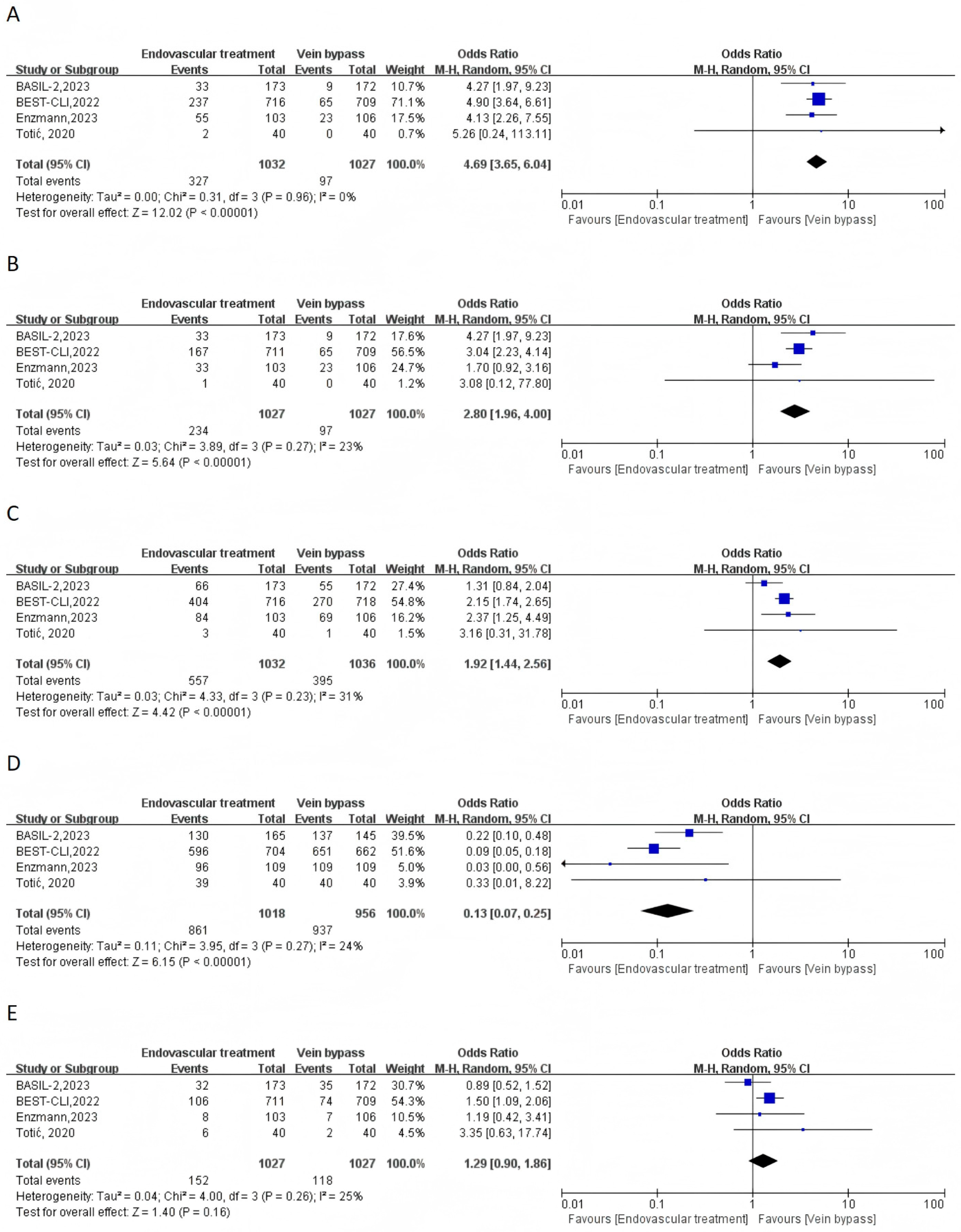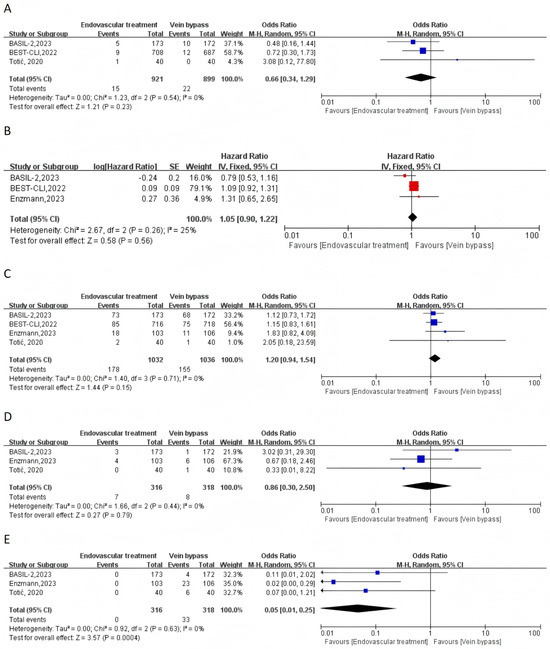 APA StyleQi, Y., Yang, Y., Weng, C., Zhao, J., Wang, J., Yuan, D., & Wang, T. (2026). Endovascular Treatment Versus Vein Bypass of Infrainguinal Peripheral Artery Disease: A Systematic Review and Meta-Analysis of Randomized Controlled Trials. Journal of Clinical Medicine, 15(1), 2. https://doi.org/10.3390/jcm15010002