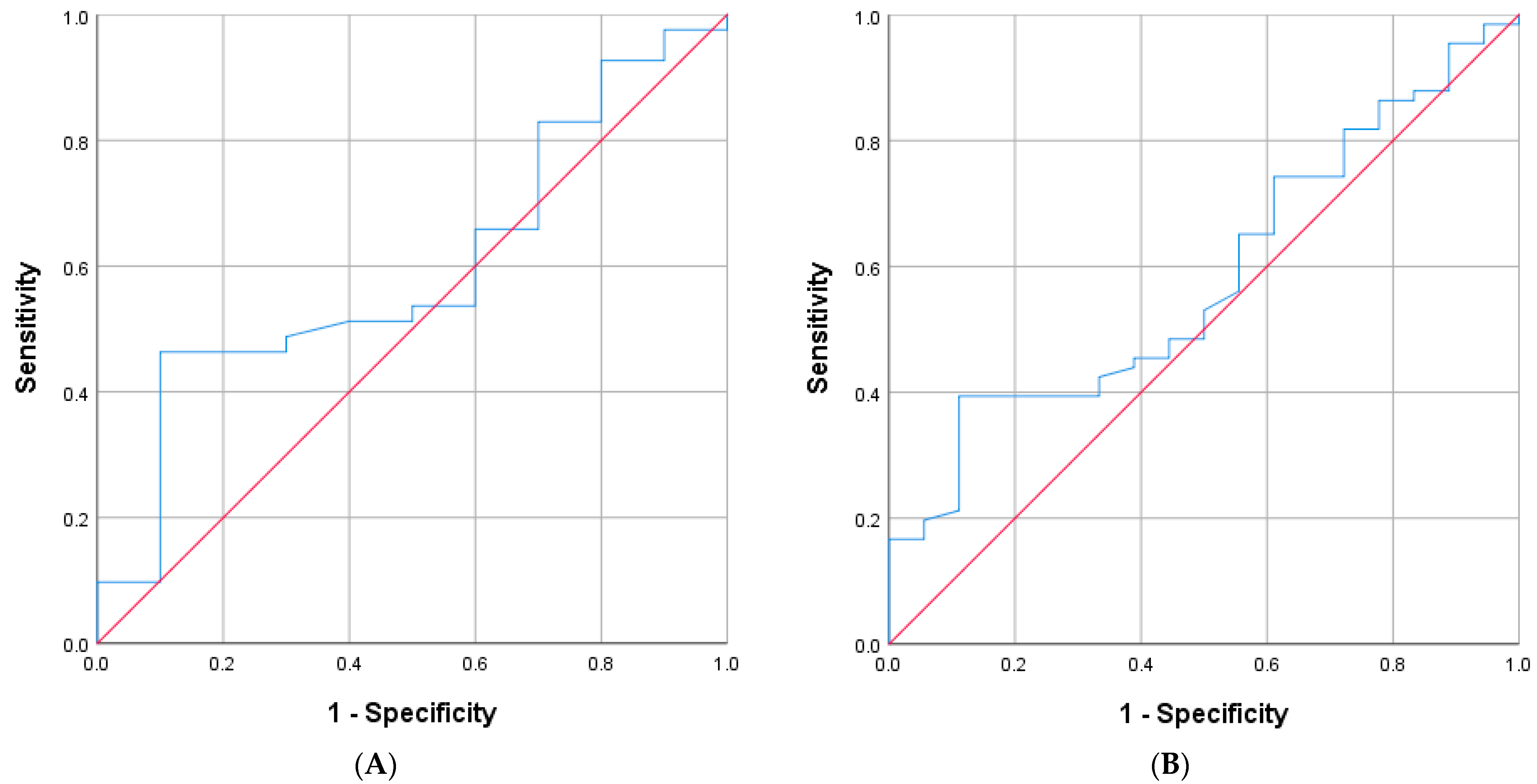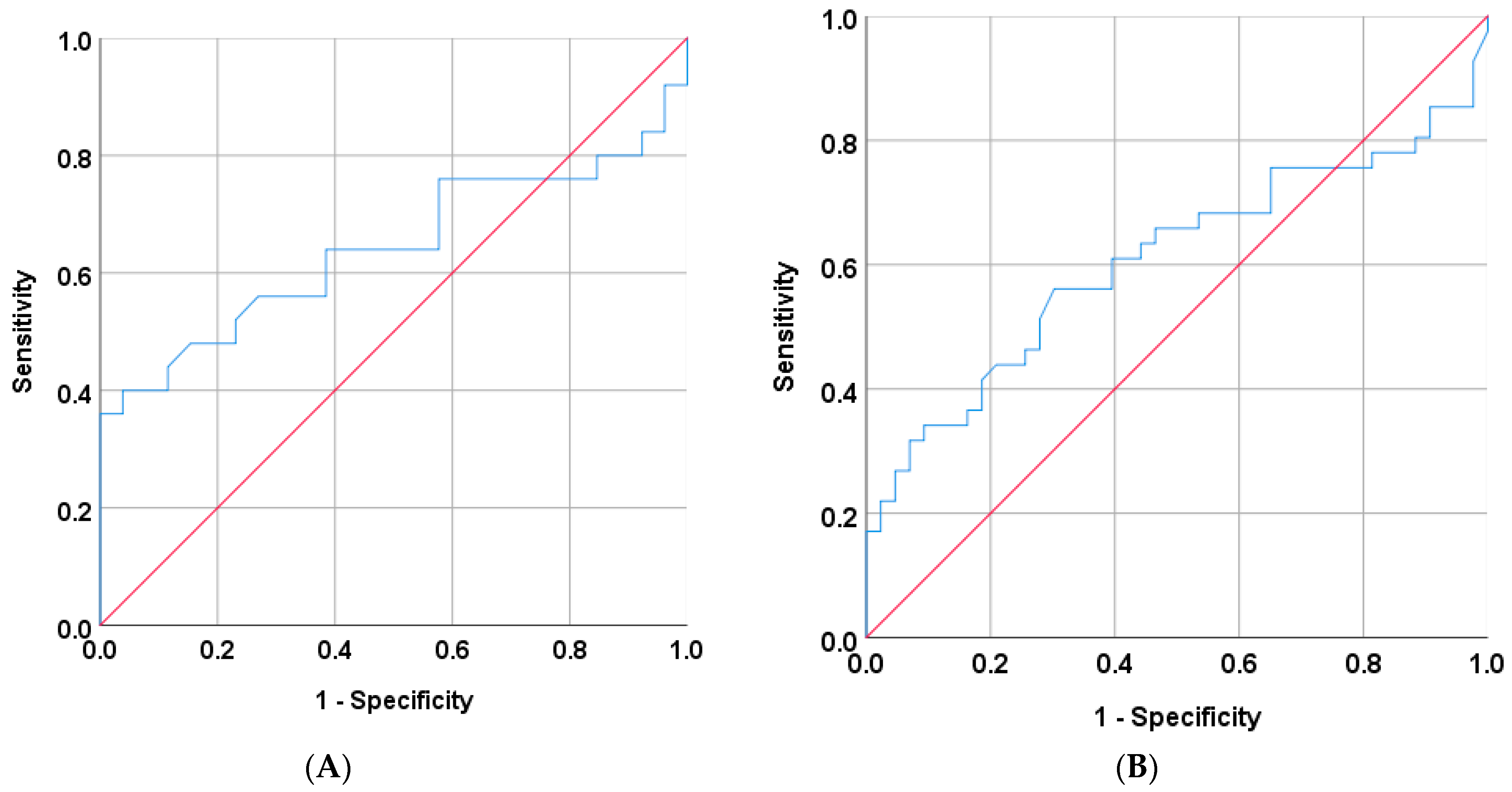 Figure 5). Based on Youden’s Index, two PAC values showed the highest accuracy. The first, 96 pg/mL (Youden’s Index = 0.46), yielded sensitivity of 75%, specificity of 71.4%, PPV of 85.7%, and NPV of 55.4%. The second, 163 pg/mL (Youden’s Index = 0.44), showed sensitivity of 43.8%, specificity of 100%, PPV of 100%, and NPV of 43.8%. Similarly, PAC value ≥ 200 pg/mL yielded PPV of 100%, NPV of 41.2%, sensitivity of 37.5%, and specificity of 100%.