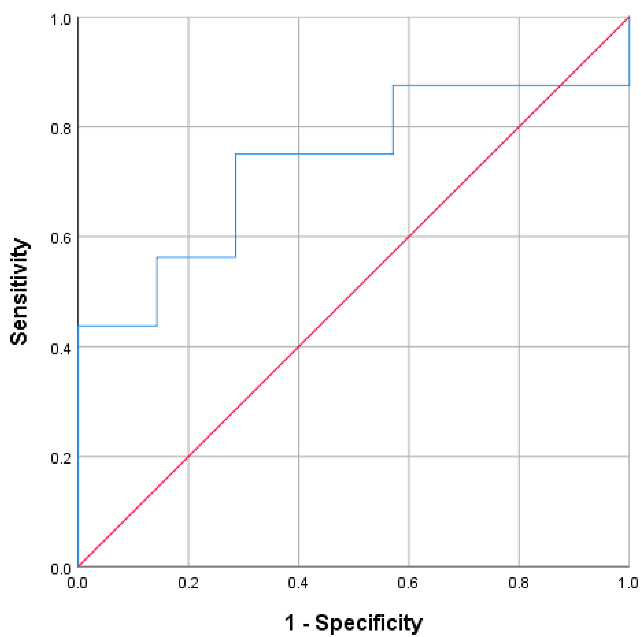 In the 23 cases with hyperreninemia, 16 were classified as Aldo-R and 7 as non-Aldo-R. The ROC analysis showed an AUC of 0.732 (95% CI: 0.53–0.94;