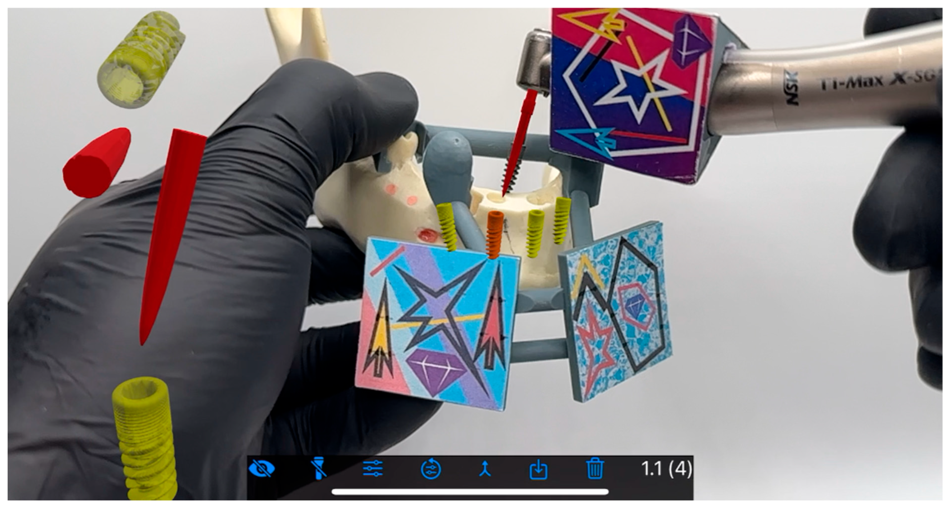 - Mangano, F.G.; Admakin, O.; Lerner, H.; Mangano, C. Artificial intelligence and augmented reality for guided implant surgery planning: A proof of concept. J. Dent. 2023, 133, 104485. [Google Scholar] [CrossRef] [PubMed]