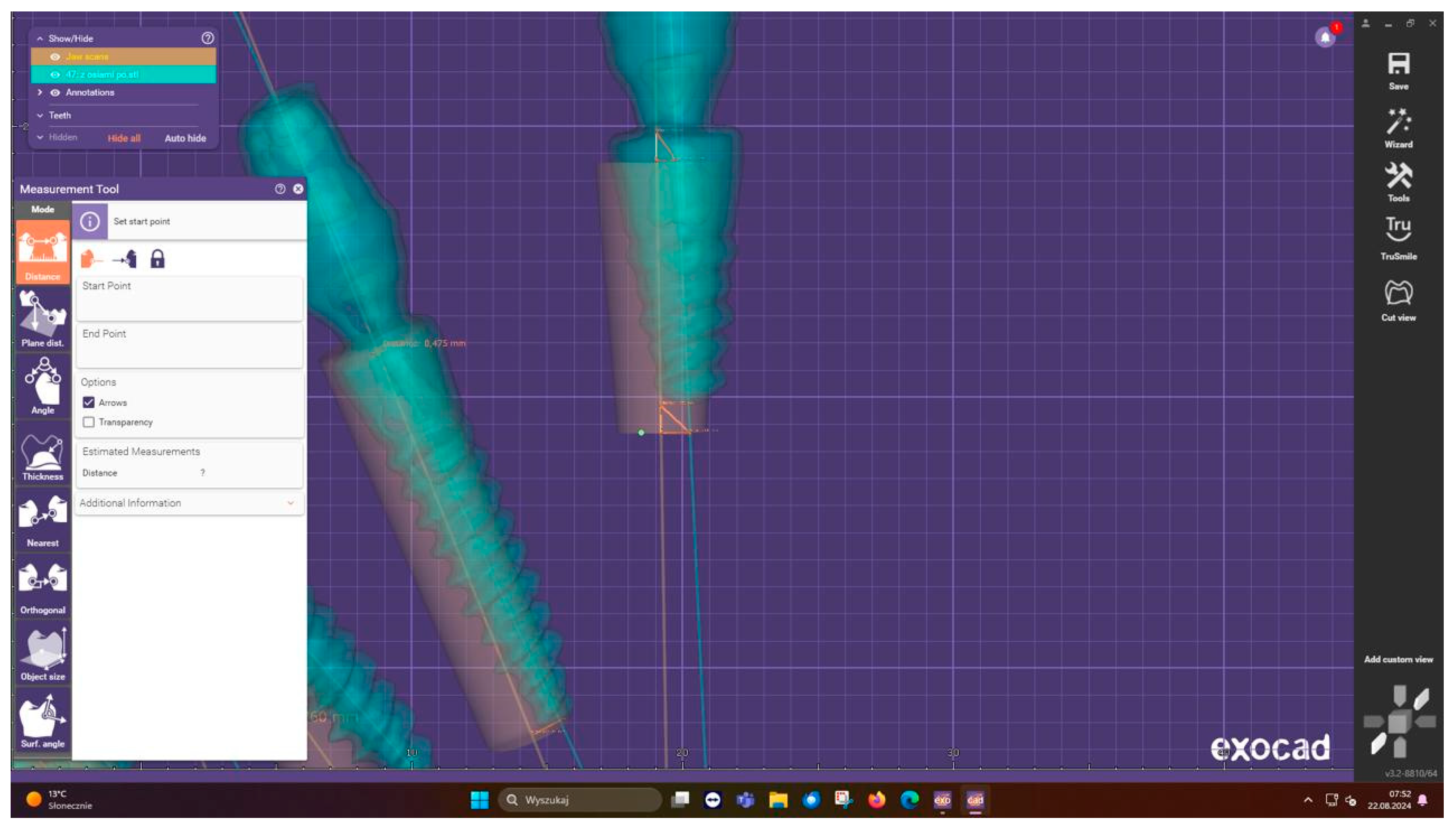 - Sekertzi, C.; Koukouviti, M.M.; Chatzigianni, A.; Kolokitha, O.E. Dynamic implant surgery—An accurate alternative to stereolithographic guides—Systematic review and meta-analysis. Dent. J. 2023, 11, 143. [Google Scholar] [CrossRef]