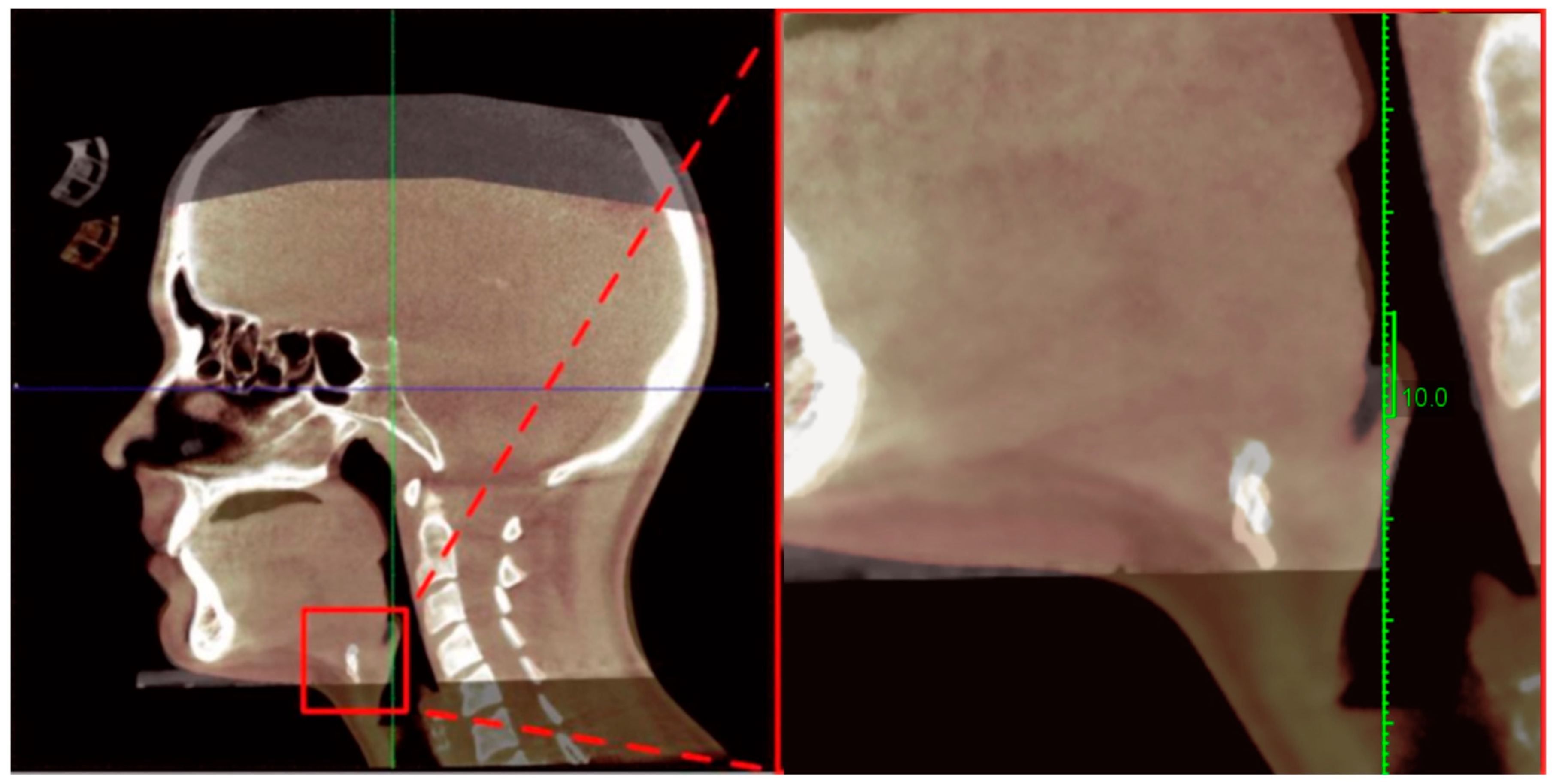 - Jo, J.H.; Park, J.W.; Jang, J.H.; Chung, J.W. Hyoid bone position as an indicator of severe obstructive sleep apnea. BMC Pulm. Med. 2022, 22, 349. [Google Scholar] [CrossRef]