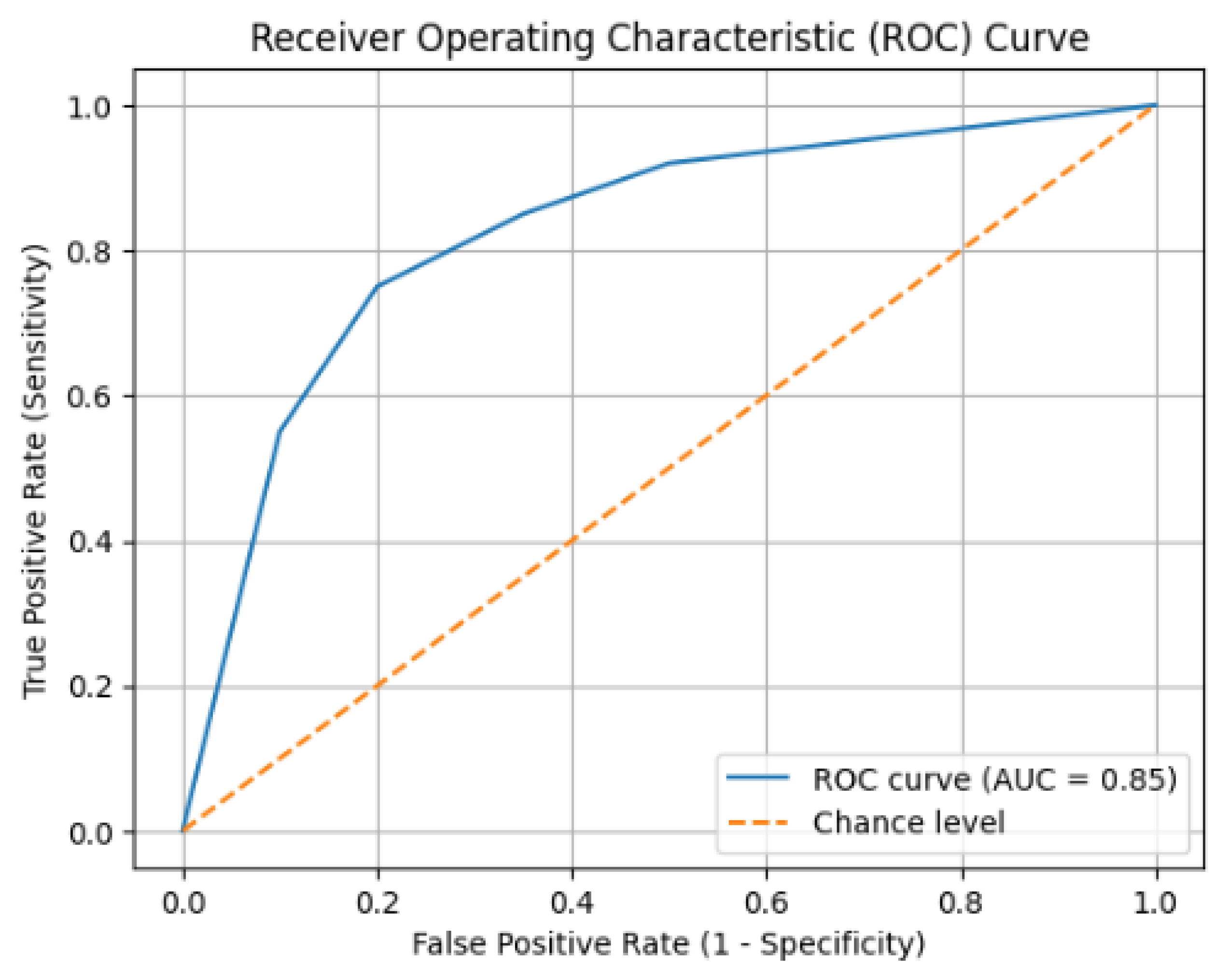 Its ability to distinguish between different patient outcomes is excellent, with an AUC of 0.85, which actually outperforms many of the older scoring systems that rely on a single measurement. In addition, the scale provides clear numerical thresholds for risk, making it extremely practical for rapid and decisive clinical action in hectic environments such as the emergency room or intensive care unit.