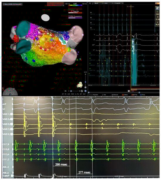 - Dahme, T.; Sheta, M.K.; Gabriel, S.; Marschang, H. Mapping and ablation of left atrial macro-reentrant tachycardia with a novel circular pulsed field ablation catheter. Heartrhythm. Case Rep. 2024, 11, 164–166. [Google Scholar] [CrossRef] [PubMed]