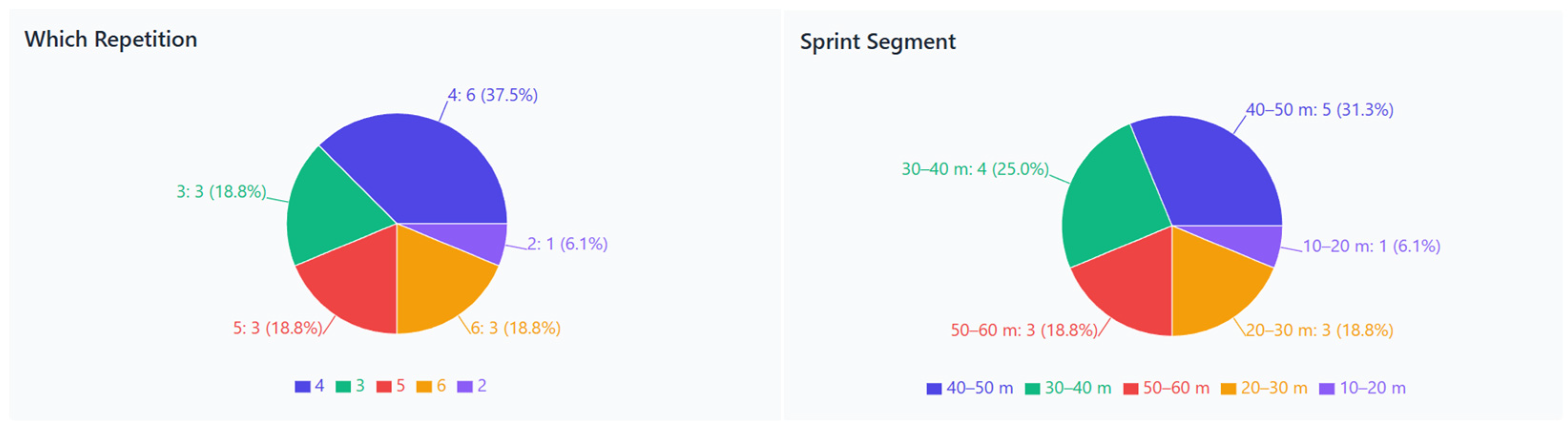 - Romero, V.; Lahti, J.; Castaño Zambudio, A.; Mendiguchia, J.; Jiménez-Reyes, P.; Morin, J.B. Effects of fatigue induced by repeated sprints on sprint biomechanics in football players: Should we look at the group or the individual? Int. J. Environ. Res. Public Health 2022, 19, 14643. [Google Scholar] [CrossRef]