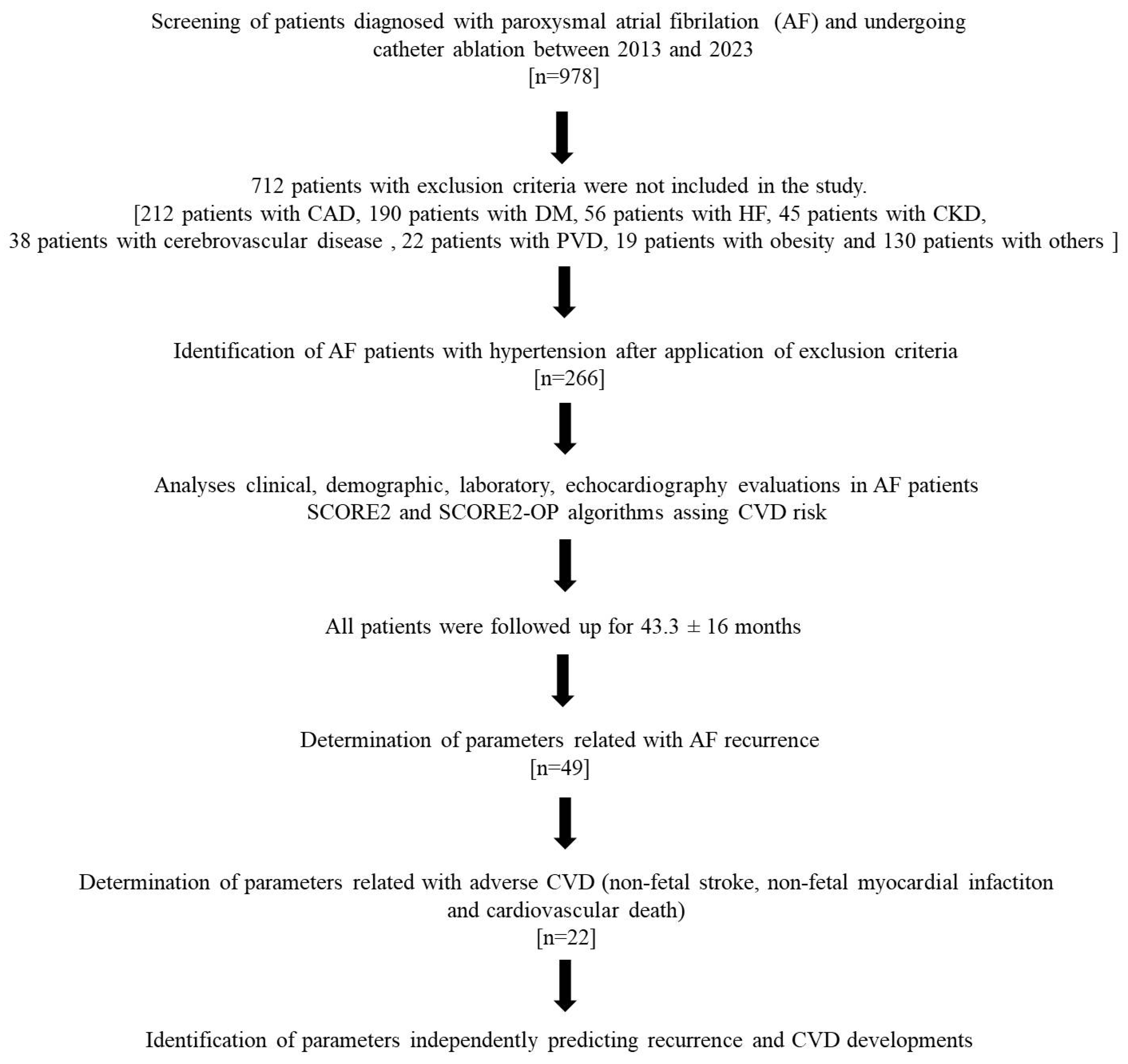 Yüksel, G.; Ardıç, M.L.; Sumbul, H.E.; Koc, M. SCORE2 and SCORE2-OP Assessment in the Predicting of Cardiovascular Diseases and AF Recurrence in Hypertensive AF Patients Who Underwent Catheter Ablation. J. Clin. Med. 2026, 15, 290. https://doi.org/10.3390/jcm15010290