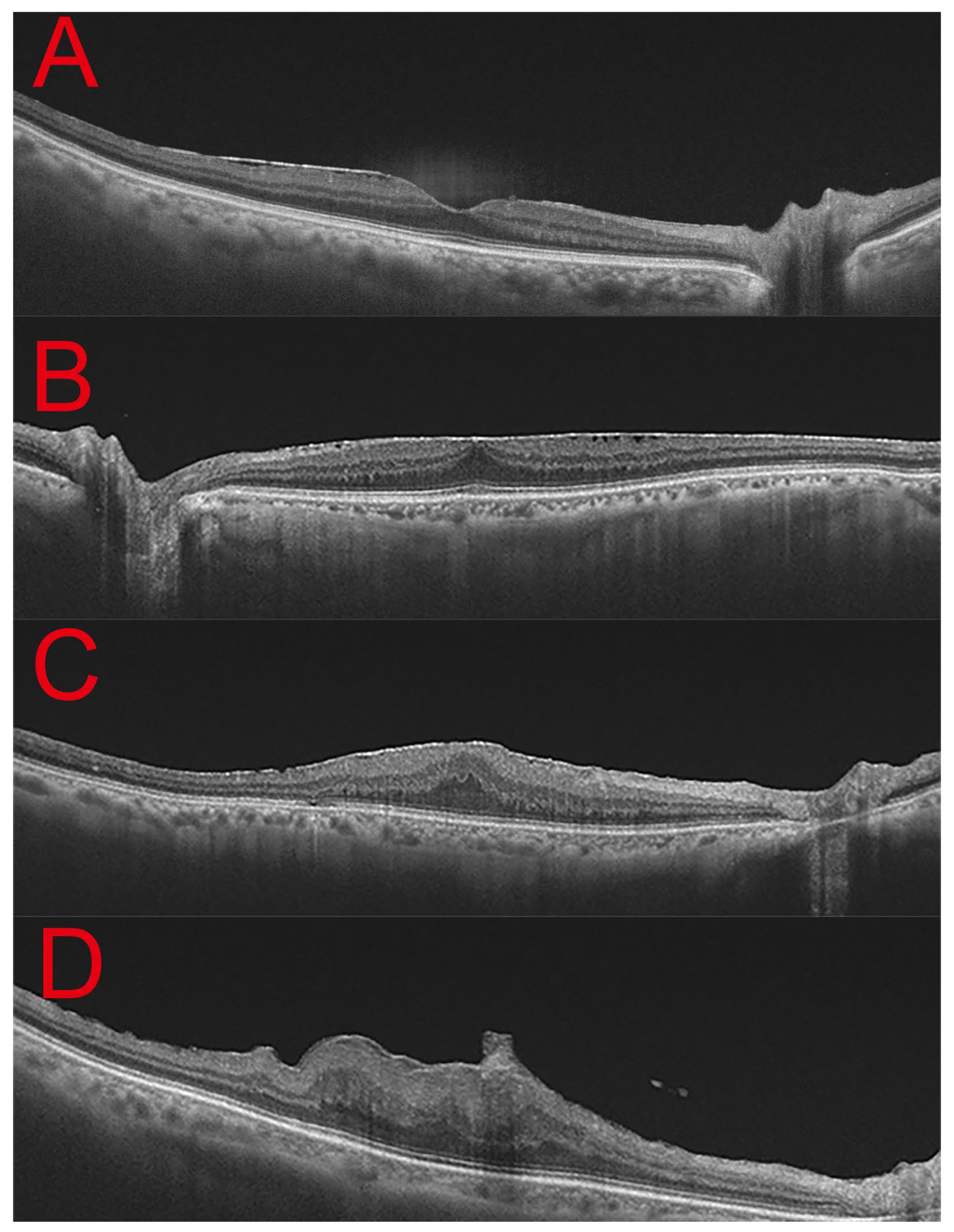 Figure 1), which incorporates the presence of ectopic inner foveal layers (EIFL), central foveal contour changes, and outer retinal disruption [