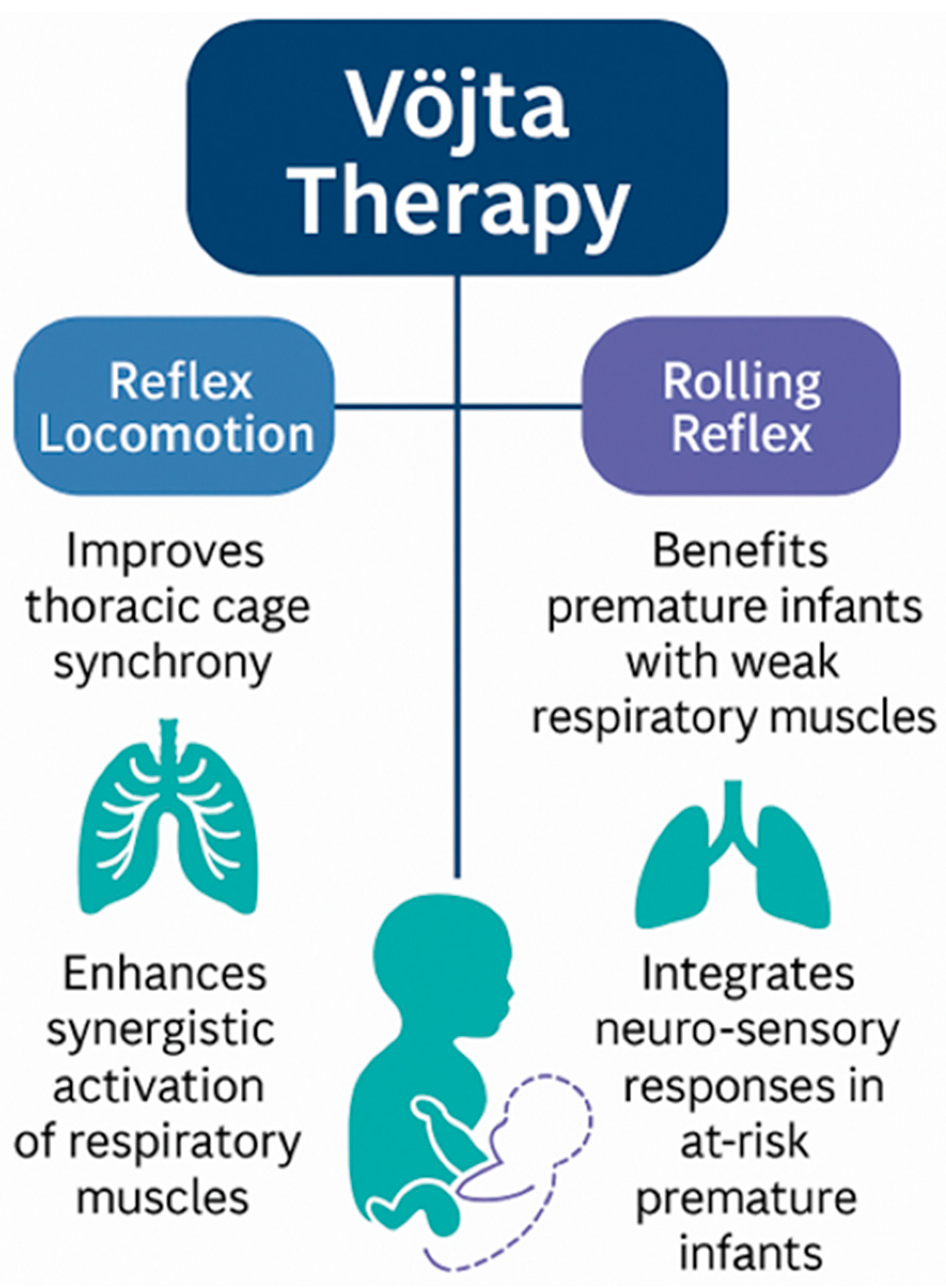 In this context, respiratory physiotherapy has gained attention as a non-pharmacological and non-invasive adjunct therapy in neonatal care. Contemporary approaches focus on gentle, low-pressure techniques aimed at improving ventilation distribution and airway clearance, including prolonged slow expiration, expiratory flow increase, postural management, and selected manual mobilization strategies, such as thoracoabdominal facilitation and reflex rolling, as described in the literature [