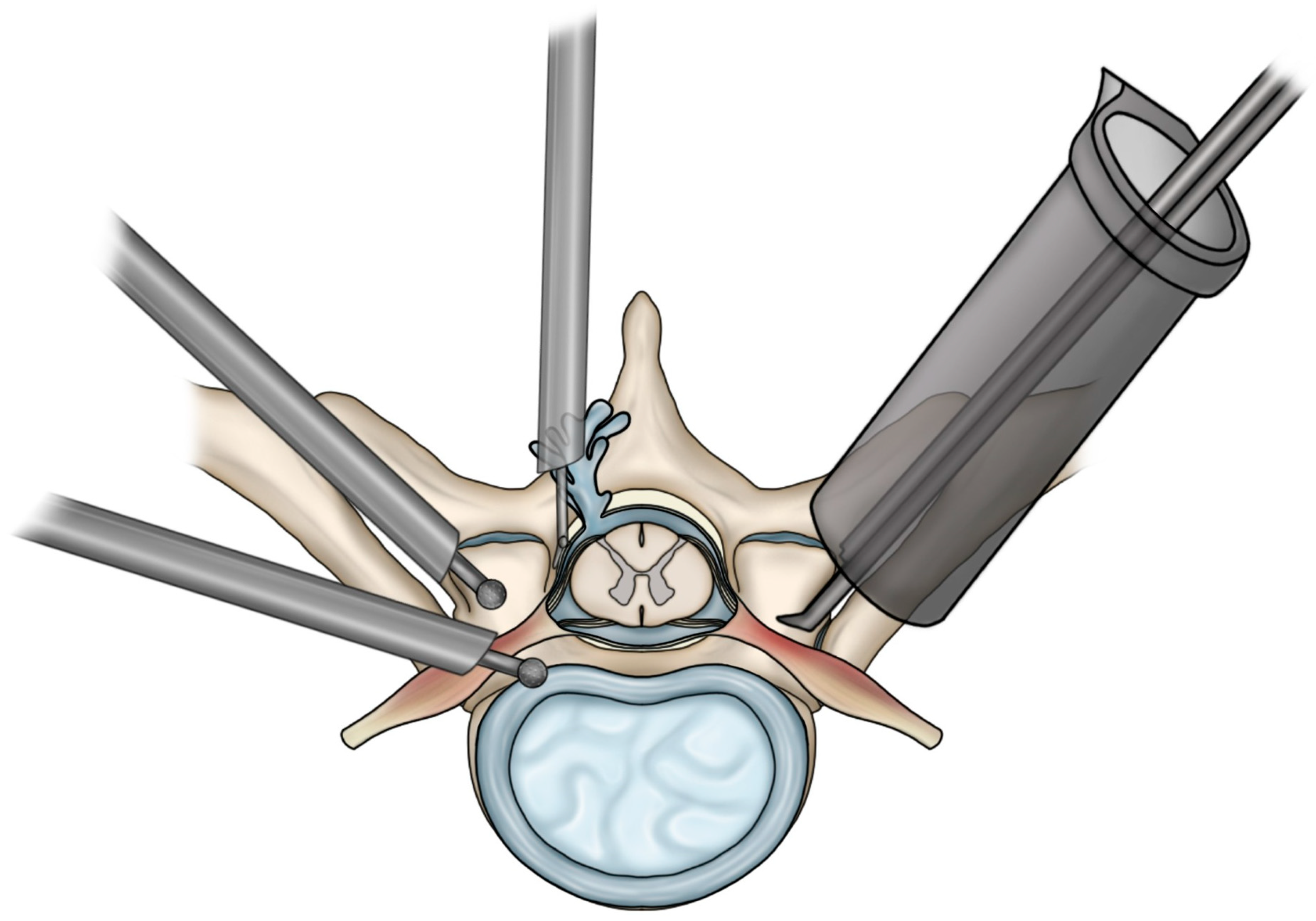 - Drossopoulos, P.N.; Sharma, A.; Ononogbu-Uche, F.C.; Tabarestani, T.Q.; Bartlett, A.M.; Wang, T.Y.; Huie, D.; Gottfried, O.; Blitz, J.; Erickson, M.; et al. Pushing the Limits of Minimally Invasive Spine Surgery—From Preoperative to Intraoperative to Postoperative Management. J. Clin. Med. 2024, 13, 2410. [Google Scholar] [CrossRef]