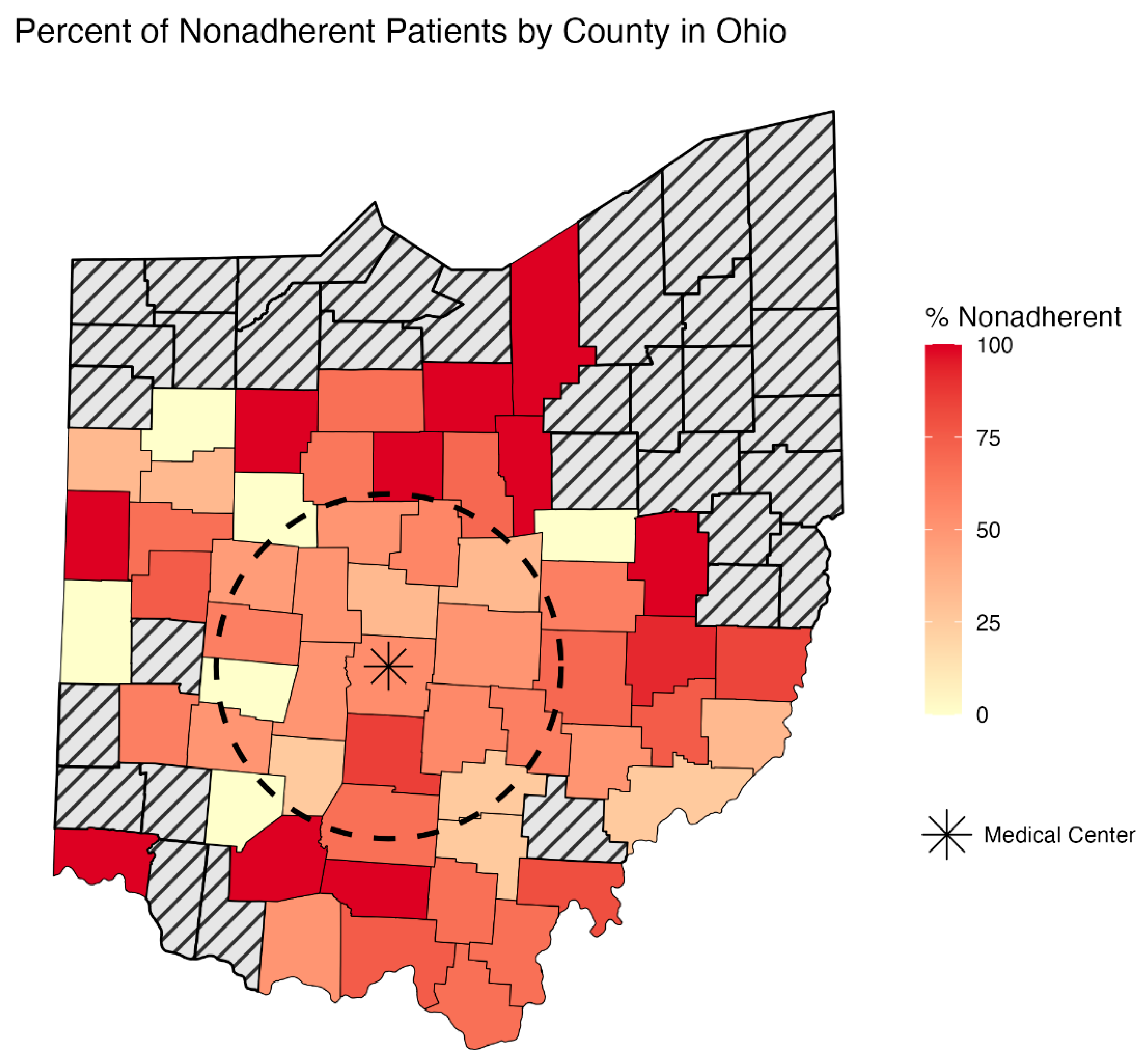 | Reside > 50 miles from medical center | 1.75 (1.16–2.64) | 0.007 ß,* |
