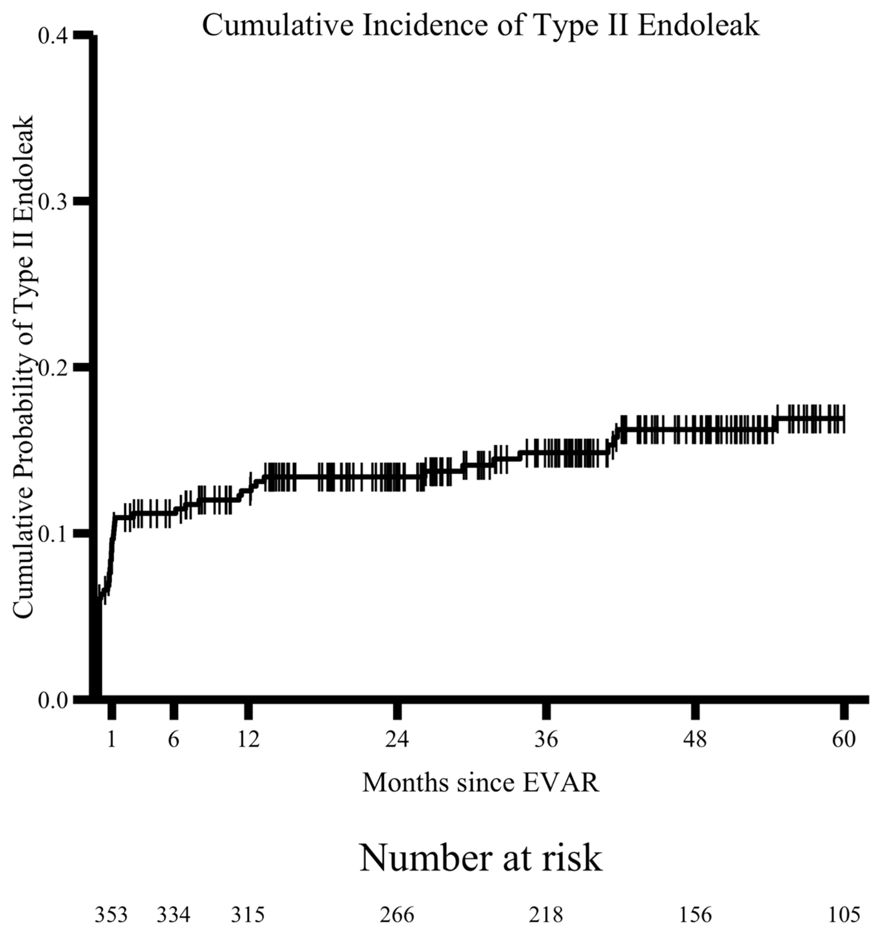 | Type II Endoleak | 34 (19.5%) | 27 (12.2%) | 0.063 |
