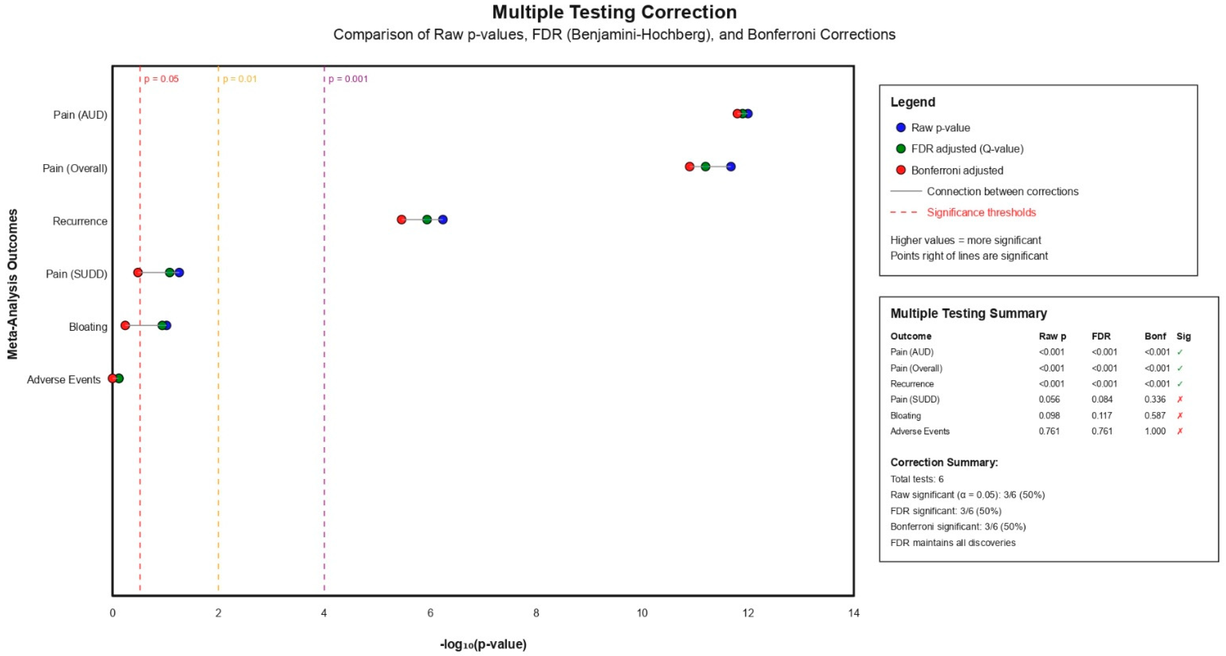 | I2 = 96.9% (pain), 39.0% (bloating) | - | - | - | - | - | - | - | Heterogeneity assessment | ||