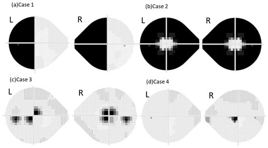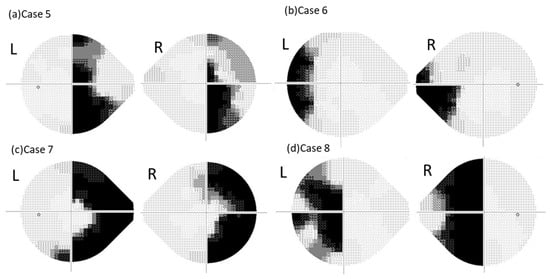 - Tsokolas, G.; Khan, H.; Tyradellis, S.; George, J.; Lawden, M. Binasal congruous hemianopia secondary to functional visual loss: A case report. Medicine 2020, 99, e20754. [Google Scholar] [CrossRef] [PubMed]