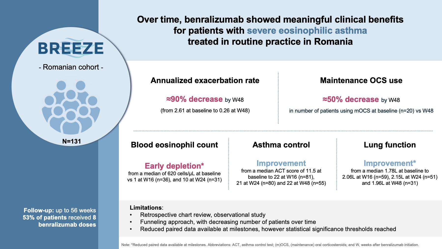 Real-World Effectiveness Following Benralizumab Use in Patients with Severe Eosinophilic Asthma in Romania: A Retrospective Cohort Study (BREEZE)