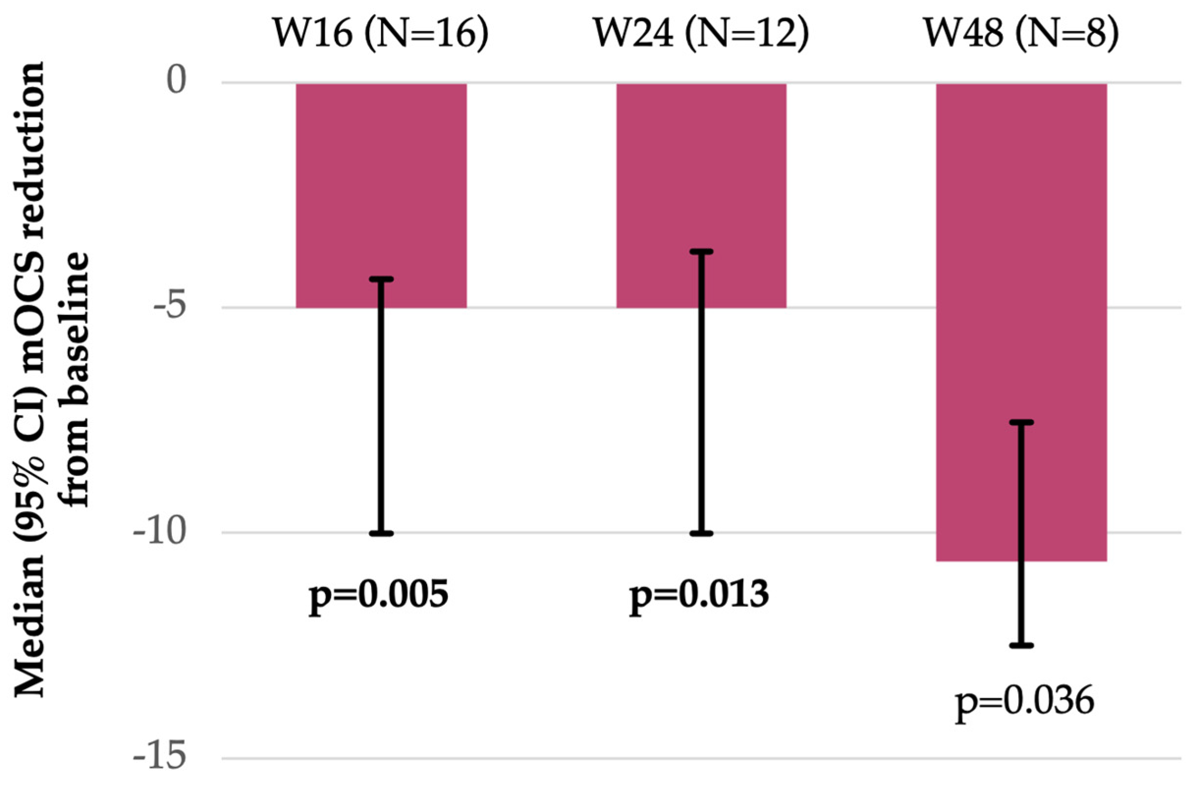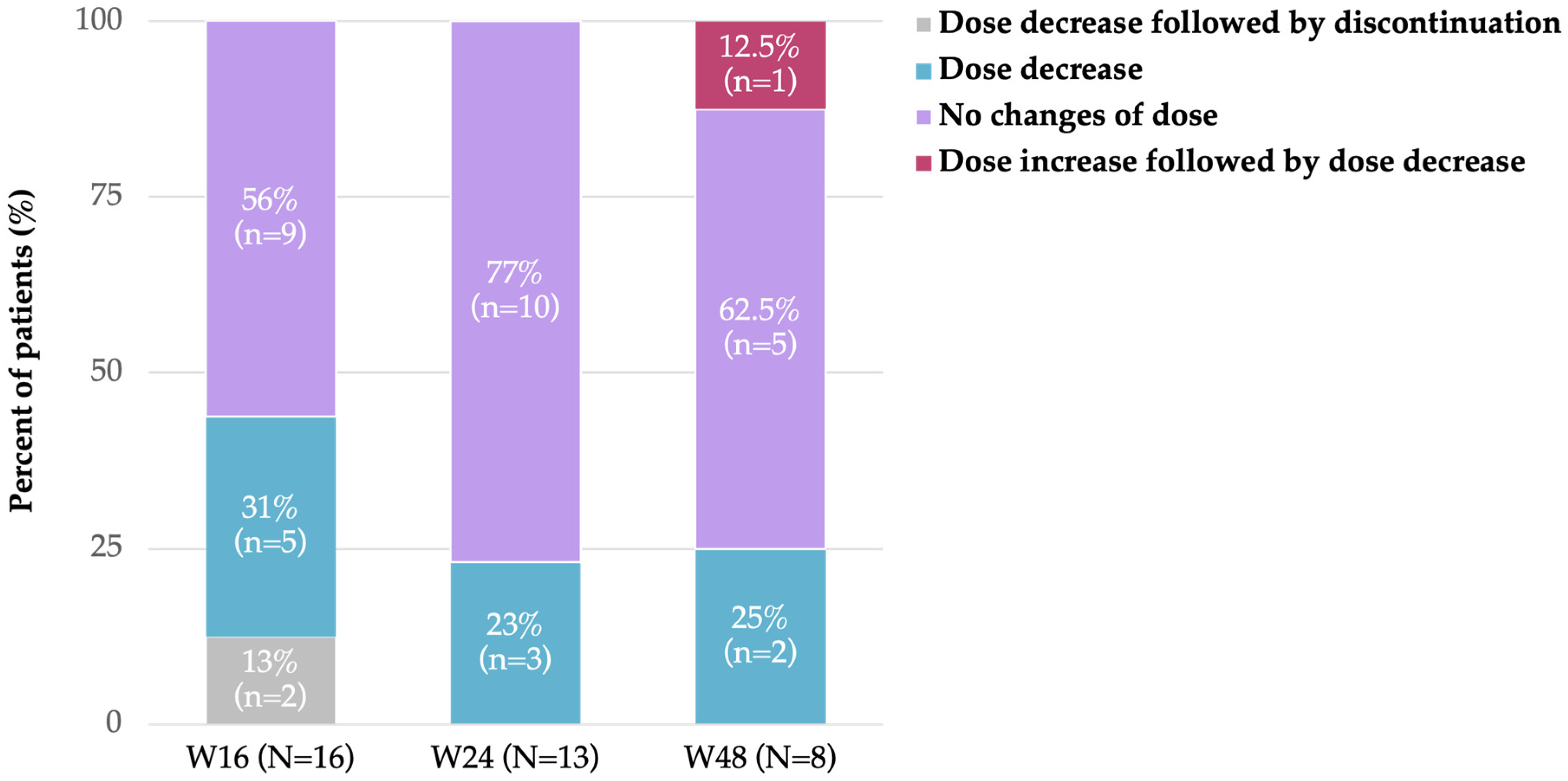 | Patients with >5 mg/day **, n (%) | 23 (85.2) |