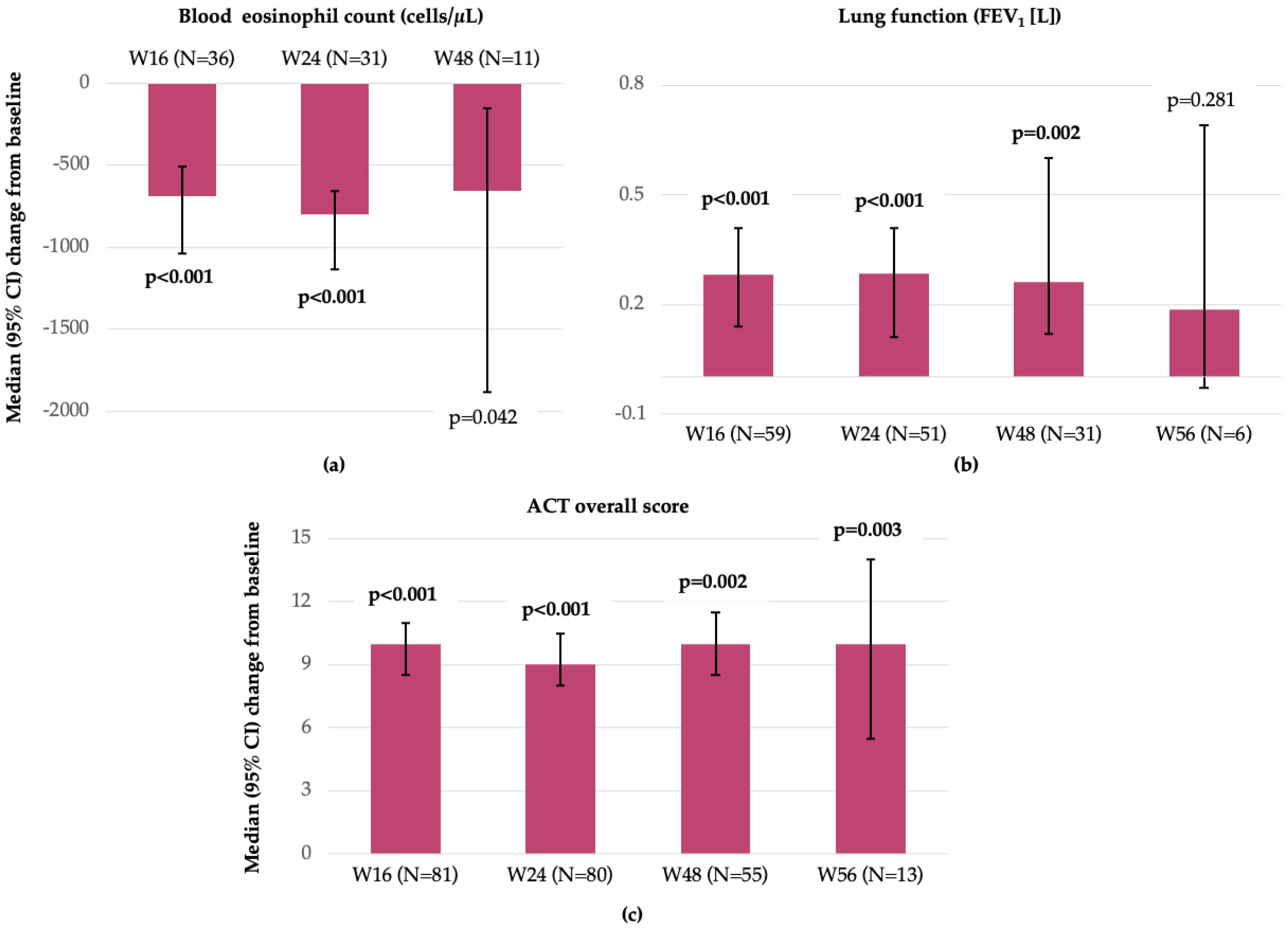 | Benralizumab | 131 (100) | 129 (100) | 123 (100) | 116 (100) | 106 (100) | 97 (100) | 90 (100) | 70 (100) | 13 (100) |