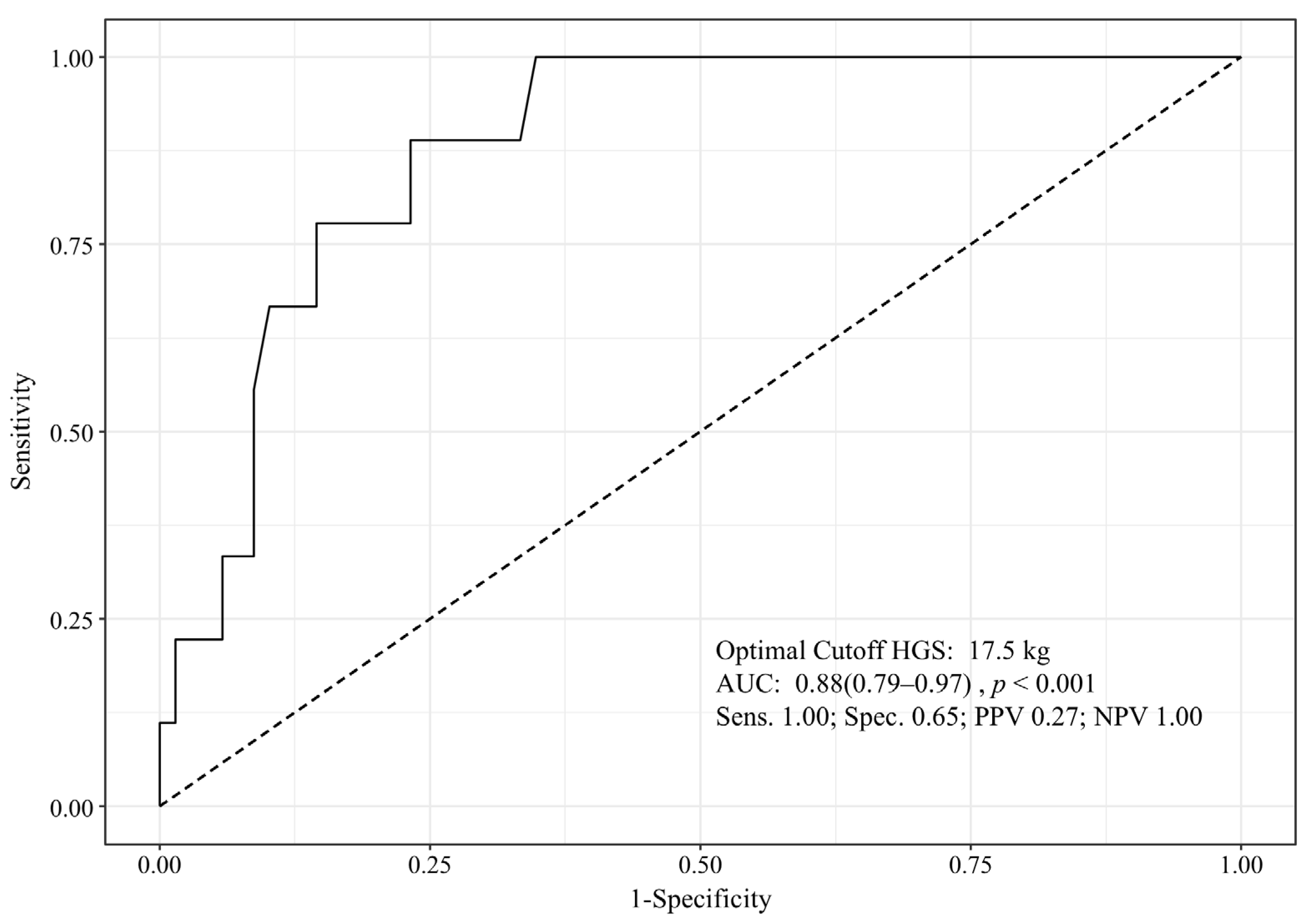 | Variable | Total (n = 78) | Weak Group (HGS ≤ 17.9) (n = 39) | Strong Group (HGS > 17.9) (n = 39) | p-Value |