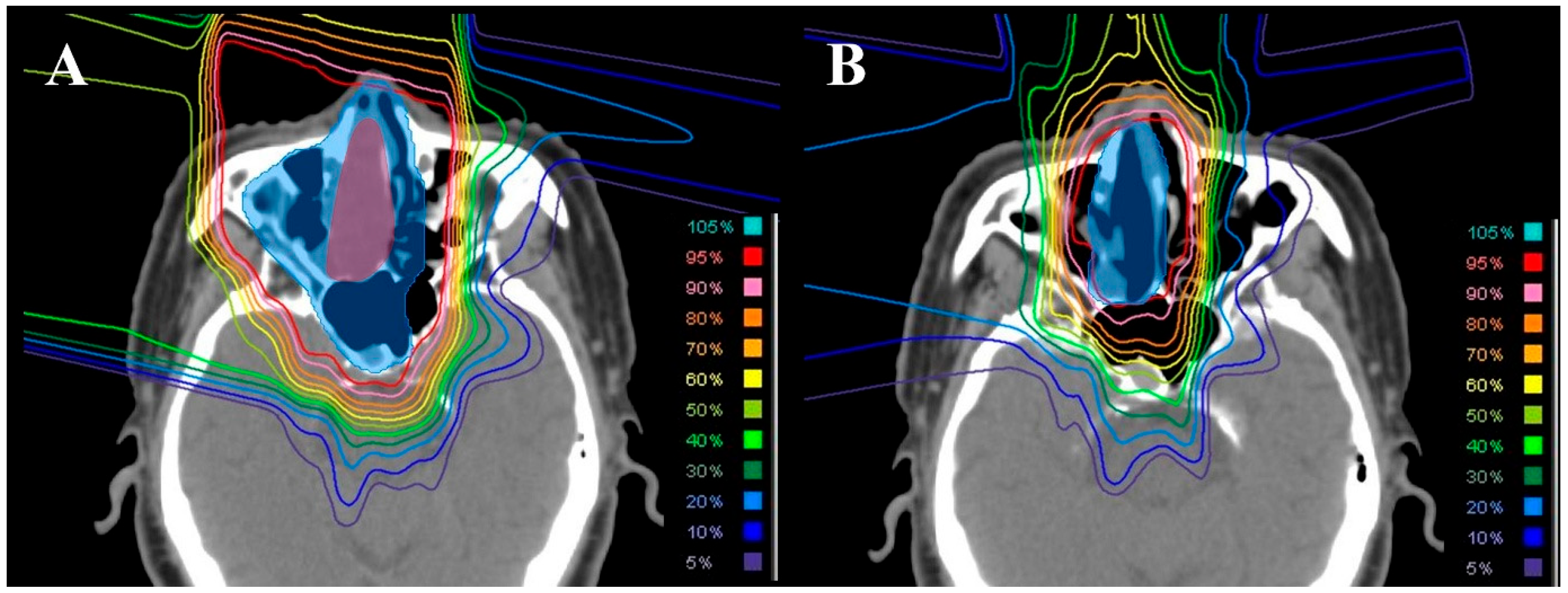 - Patel, S.H.; Wang, Z.; Wong, W.W.; Murad, M.H.; Buckey, C.R.; Mohammed, K.; Alahdab, F.; Altayar, O.; Nabhan, M.; Schild, S.E.; et al. Charged Particle Therapy versus Photon Therapy for Paranasal Sinus and Nasal Cavity Malignant Diseases: A Systematic Review and Meta-Analysis. Lancet Oncol. 2014, 15, 1027–1038. [Google Scholar] [CrossRef] [PubMed]