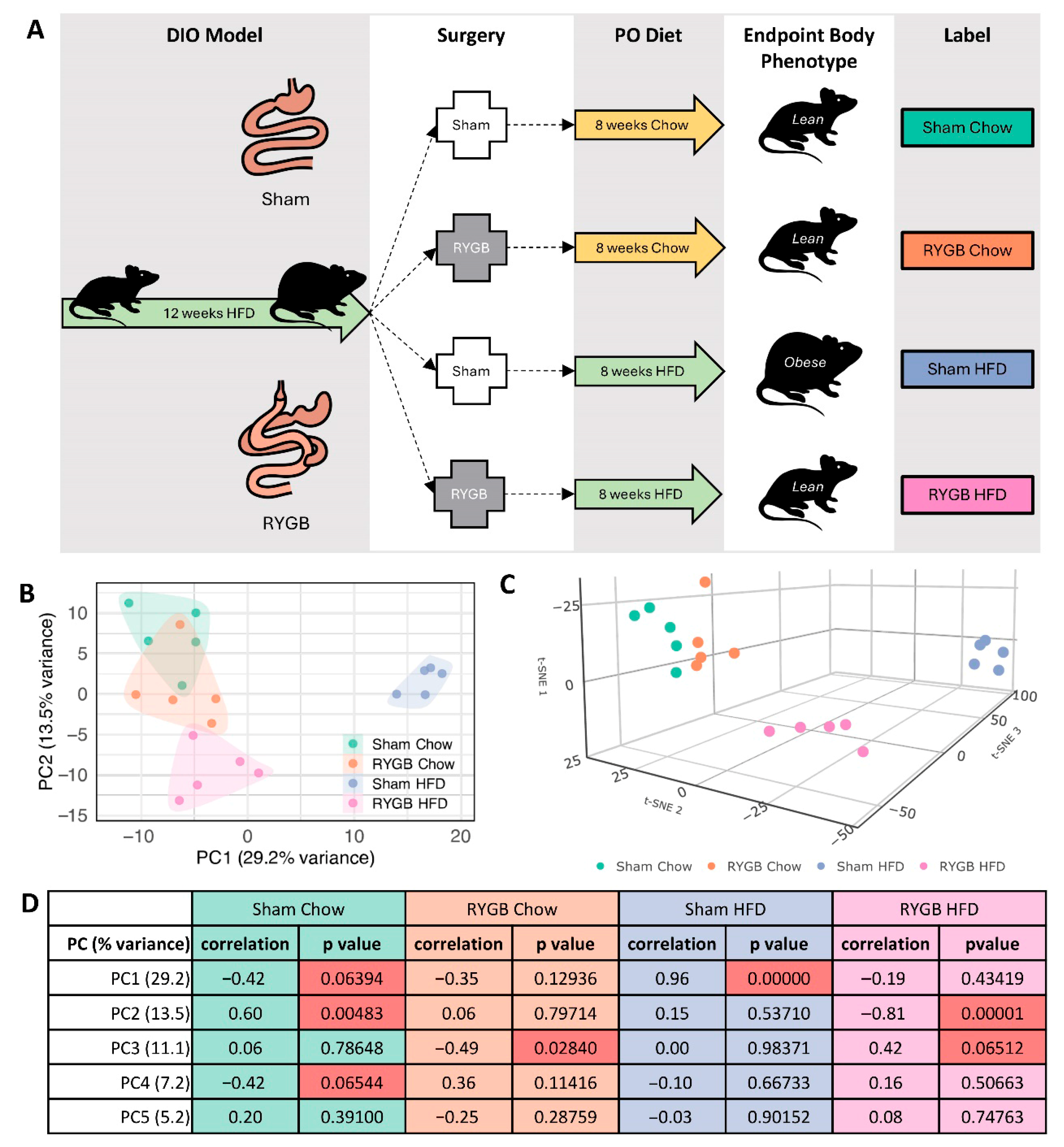 - Stevenson, M.; Srivastava, A.; Nacher, M.; Hall, C.; Palaia, T.; Lee, J.; Zhao, C.L.; Lau, R.; Ali, M.A.E.; Park, C.Y.; et al. The Effect of Diet Composition on the Post-operative Outcomes of Roux-en-Y Gastric Bypass in Mice. Obes. Surg. 2024, 34, 911–927. [Google Scholar] [CrossRef] [PubMed]