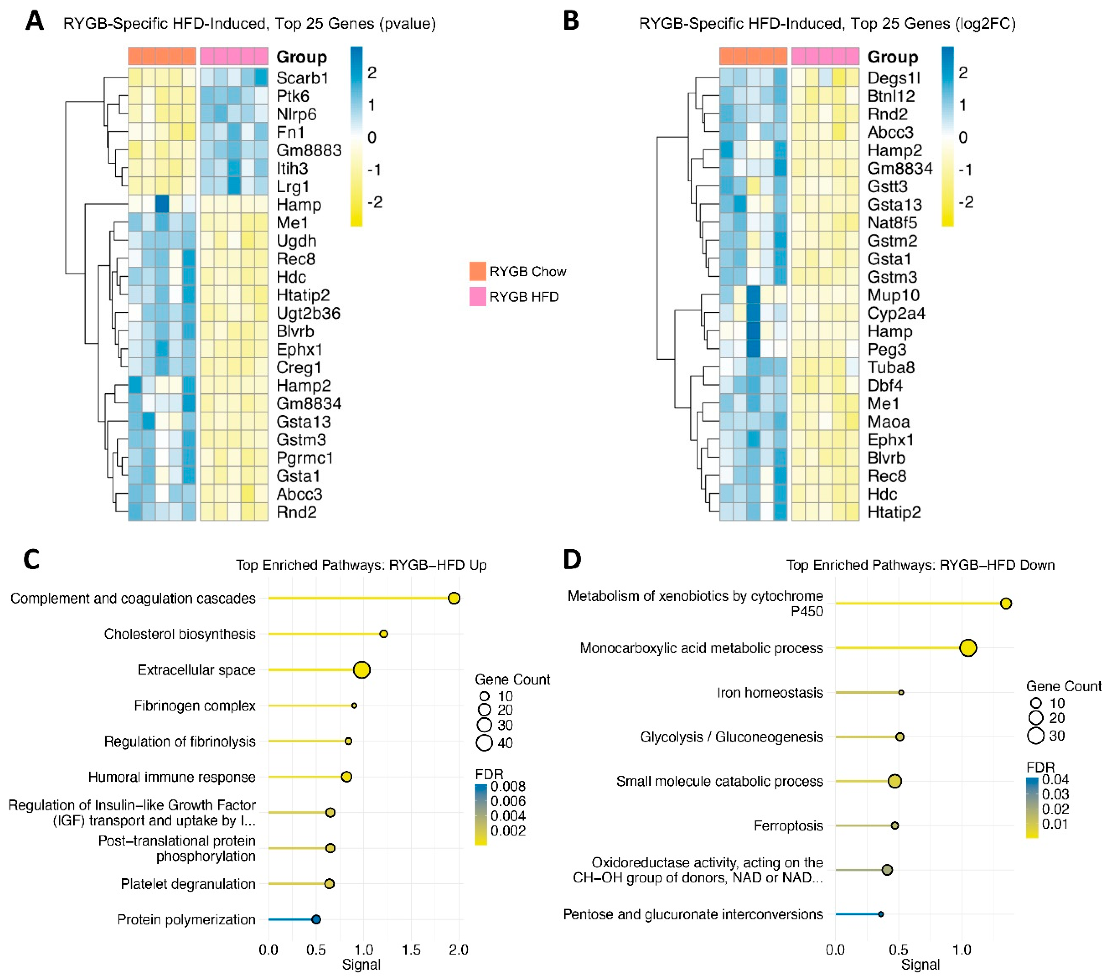 - HFD after RYGB triggers liver stress, inflammation, and iron imbalance.