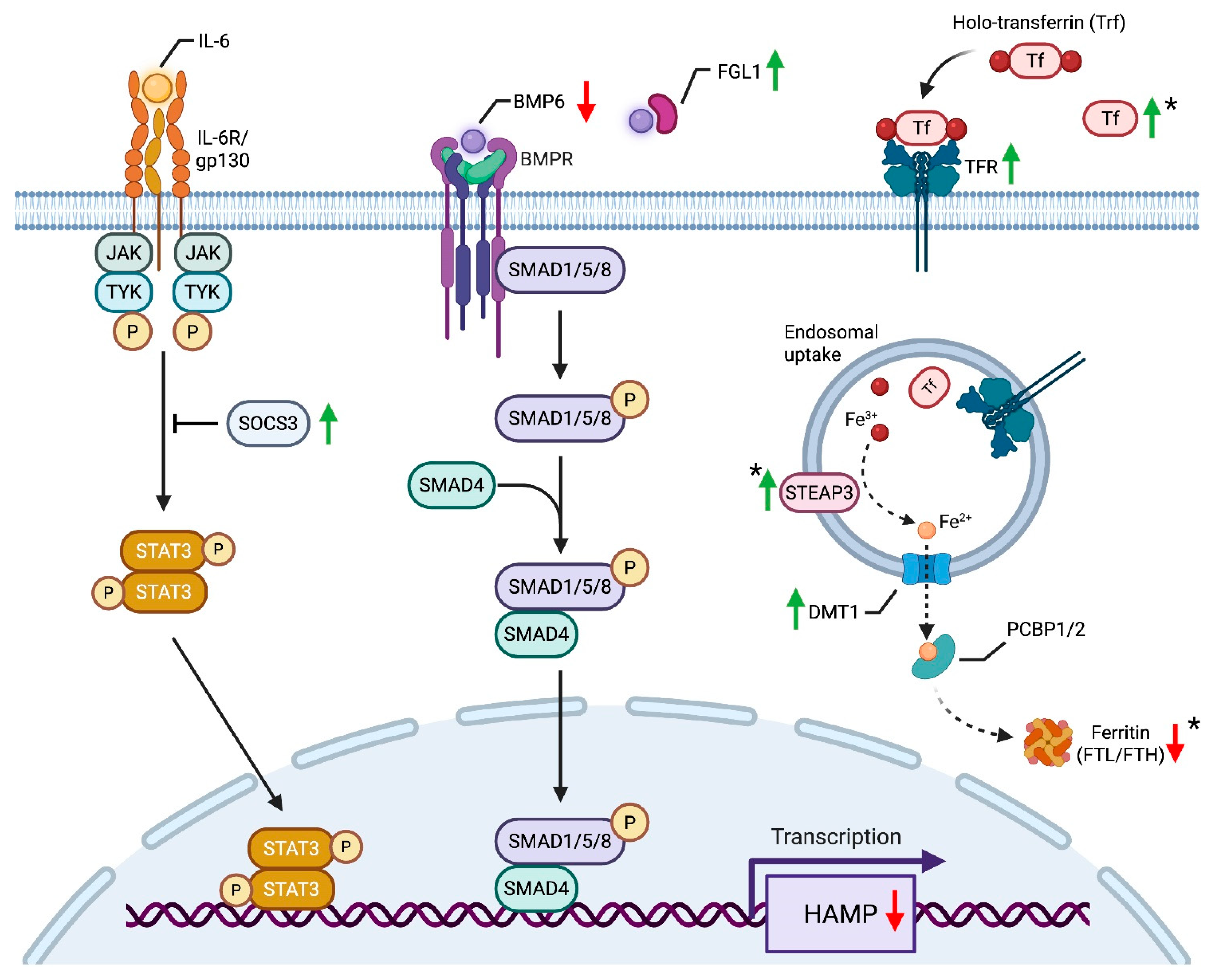 - Sardo, U.; Perrier, P.; Cormier, K.; Sotin, M.; Desquesnes, A.; Cannizzo, L.; Ruiz-Martinez, M.; Thevenin, J.; Billoré, B.; Jung, G.; et al. The hepatokine FGL1 regulates hepcidin and iron metabolism during the recovery from hemorrhage-induced anemia in mice. bioRxiv 2023. [Google Scholar] [CrossRef]