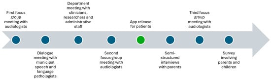 As the primary stakeholders, audiologists were included in three focus group meetings throughout the project to evaluate the relevance and influence of the app, and to guide the implementation process. The first two meetings were conducted before the implementation of the app, and the last meeting took place after its implementation.