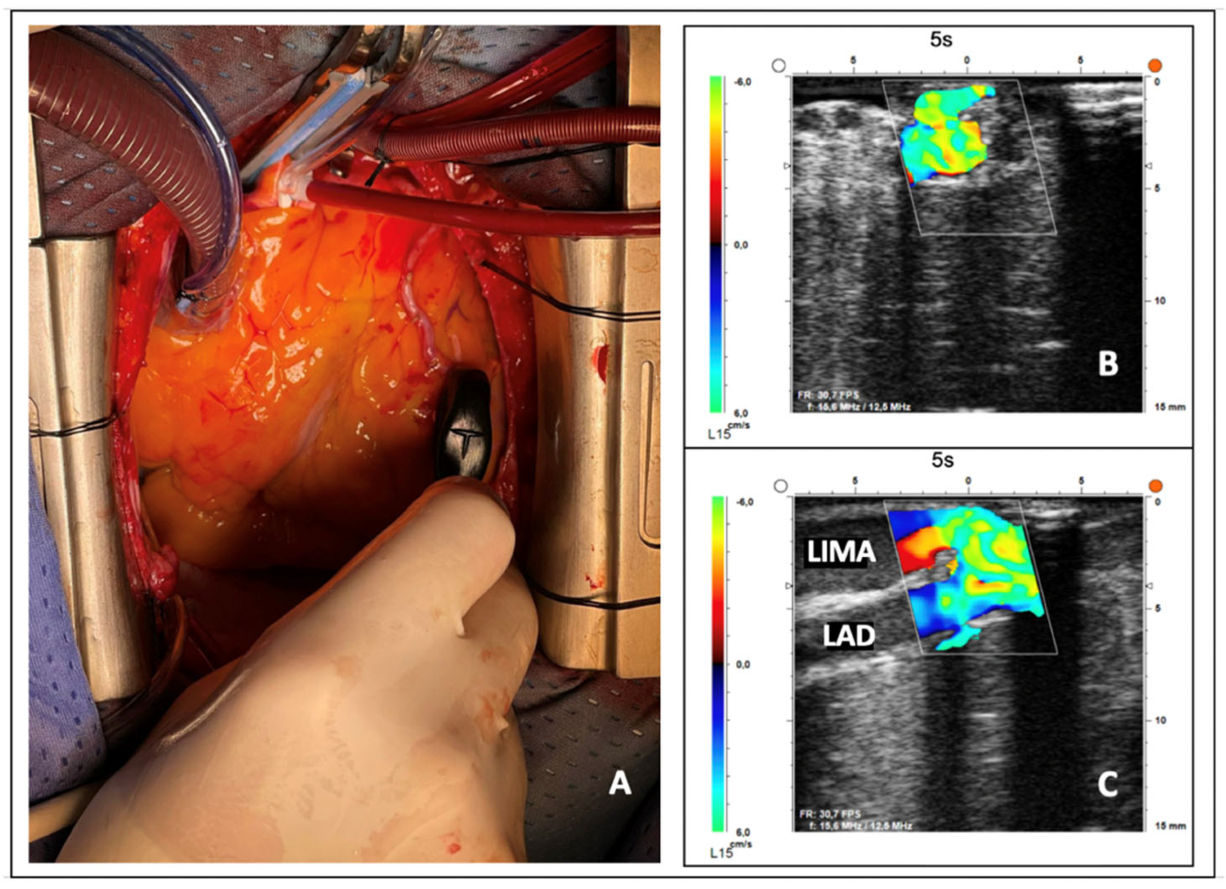 - Kieser, T.M.; Taggart, D.P. The use of intraoperative graft assessment in guiding graft revision. Ann. Cardiothorac. Surg. 2018, 7, 652–662. [Google Scholar] [CrossRef]