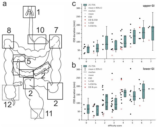 - Steinbruck, I.; Faiss, S.; Dumoulin, F.L.; Oyama, T.; Pohl, J.; von Hahn, T.; Schmidt, A.; Allgaier, H.P. Learning curve of endoscopic submucosal dissection (ESD) with prevalence-based indication in unsupervised Western settings: A retrospective multicenter analysis. Surg. Endosc. 2023, 37, 2574–2586. [Google Scholar] [CrossRef]