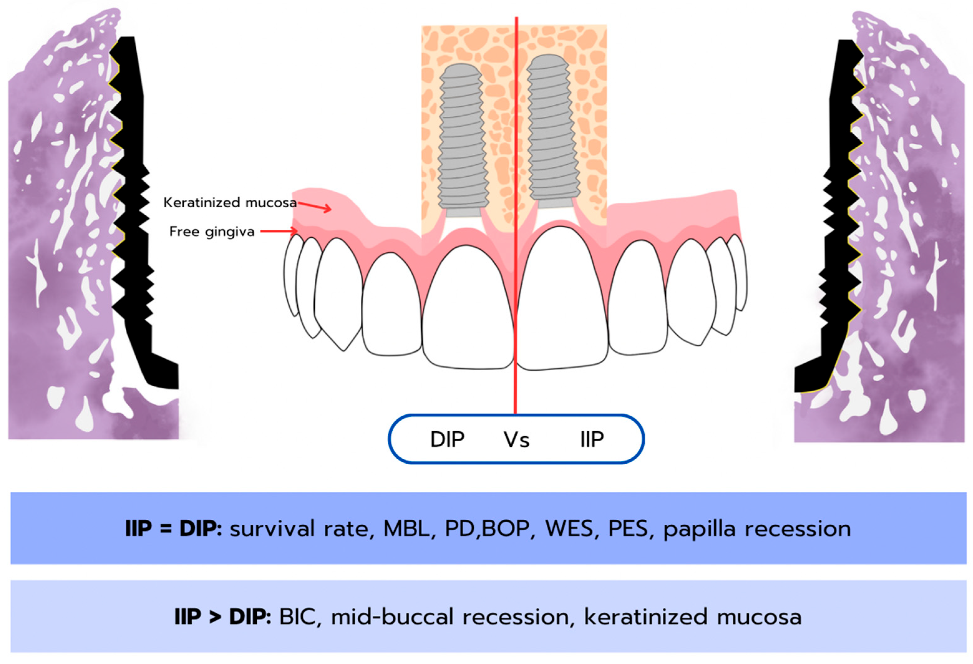 | Molecular biology studies | A limited number of studies have attempted to evaluate biochemical changes related to implant healing. To date, existing research has identified dynamic changes in biomarker levels during osseointegration and differences associated with various implant loading protocols. However, there is a significant knowledge gap in this area; no study has investigated molecular activity specifically comparing between IIP and DIP yet. |