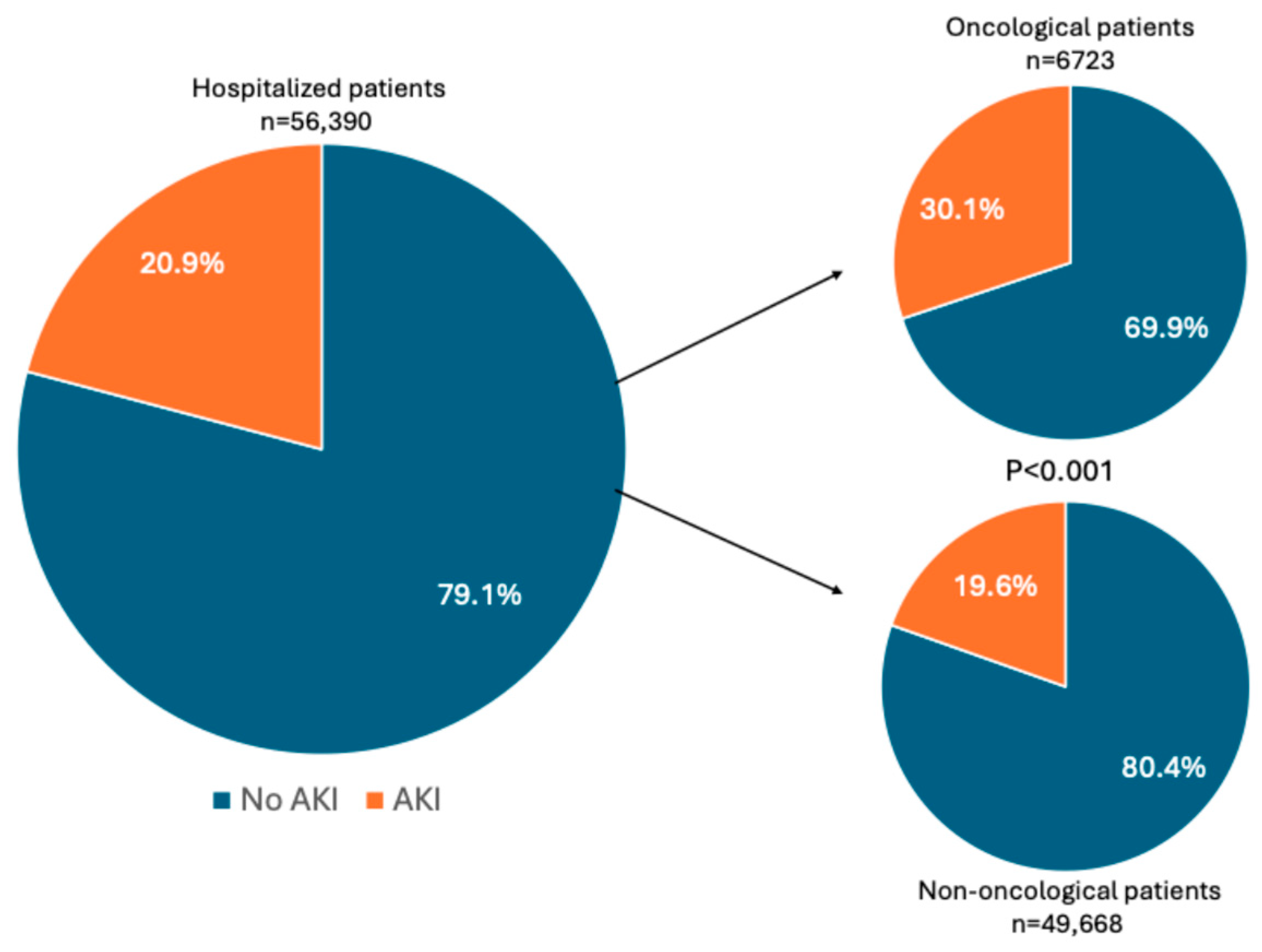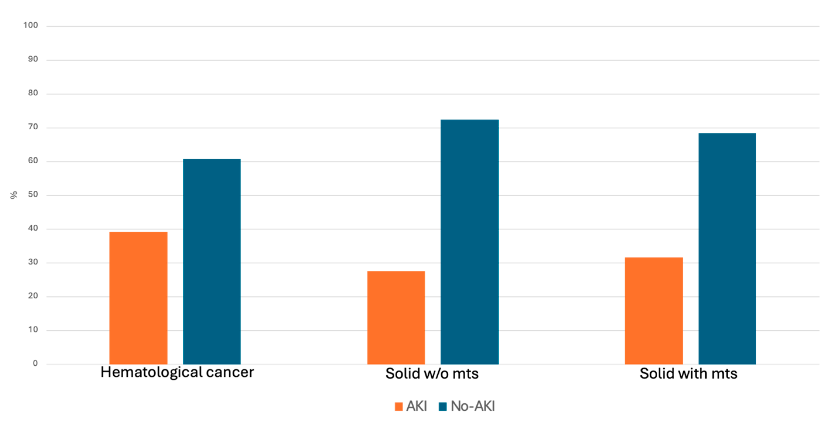 In conclusion, AKI epidemiology and prognosis vary substantially not only between oncologic and non-oncologic patients but also across different malignancy types. Each cancer category exhibits a distinct pattern of AKI risk factors and outcomes. Analyses limited to patient-related factors alone may not fully capture the complexity of AKI in cancer, underscoring the need for future studies that integrate disease burden, treatment-related toxicity, and dynamic clinical parameters.