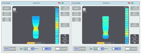 The EndoFLIPTM (Medtronic plc, Dublin, Ireland) technology is functionally based on impedance planimetry. It generates parameters from changes in diameter and intra-bag pressure that occur due to individual luminal geometry during the volume-controlled expansion of a catheter-based balloon that contains 16 electrodes immersed in saline solution [13]. This technique delivers the potential to concurrently visualize luminal geometry and gain a better understanding of dynamic processes at gastrointestinal sphincters and luminal reconstructions, even during the operative procedure. Particularly in reflux surgery, EndoFLIPTM has been integrated into surgical practice, as it provides a stand-alone feature for measuring functional changes in real time occurring at the LES during an anti-reflux procedure, after establishing normative values for distensibility at the LES [14,15].