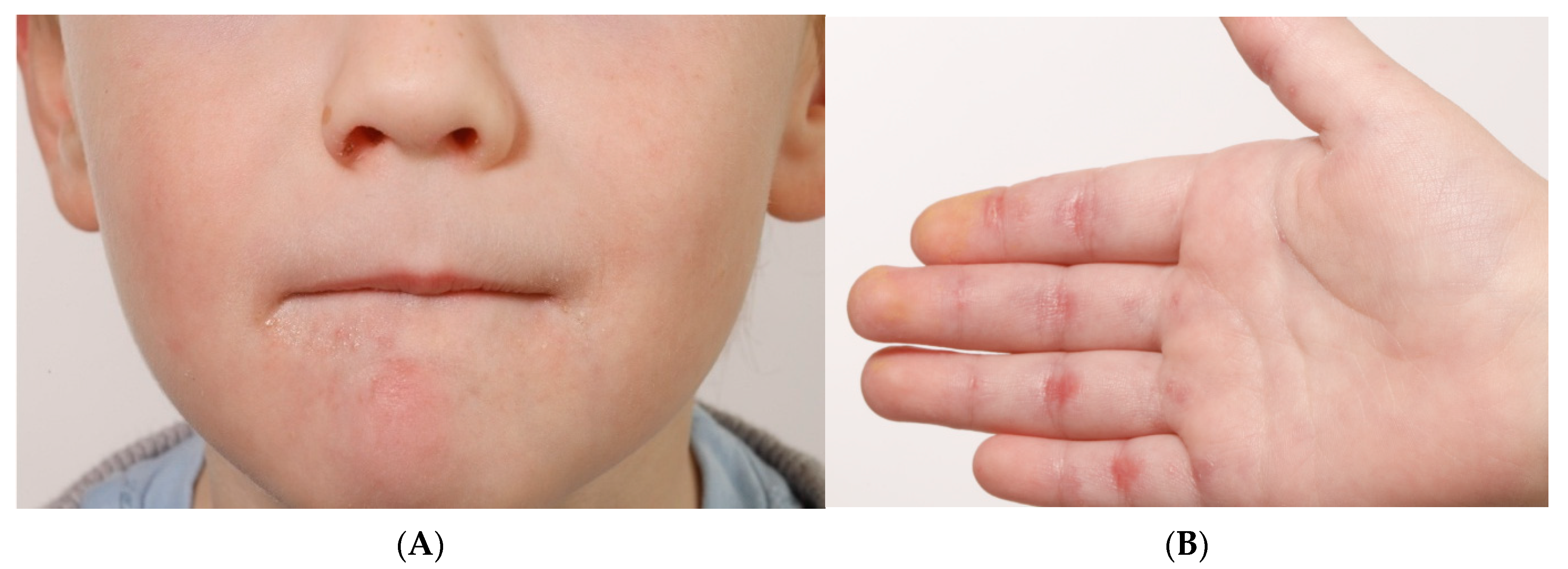 - Huang, B.; Huang, W.; Hao, S. Cutaneous ulceration in juvenile dermatomyositis with anti-melanoma differentiation-associated gene 5. Pediatr. Dermatol. 2024, 41, 342–343. [Google Scholar] [CrossRef] [PubMed]