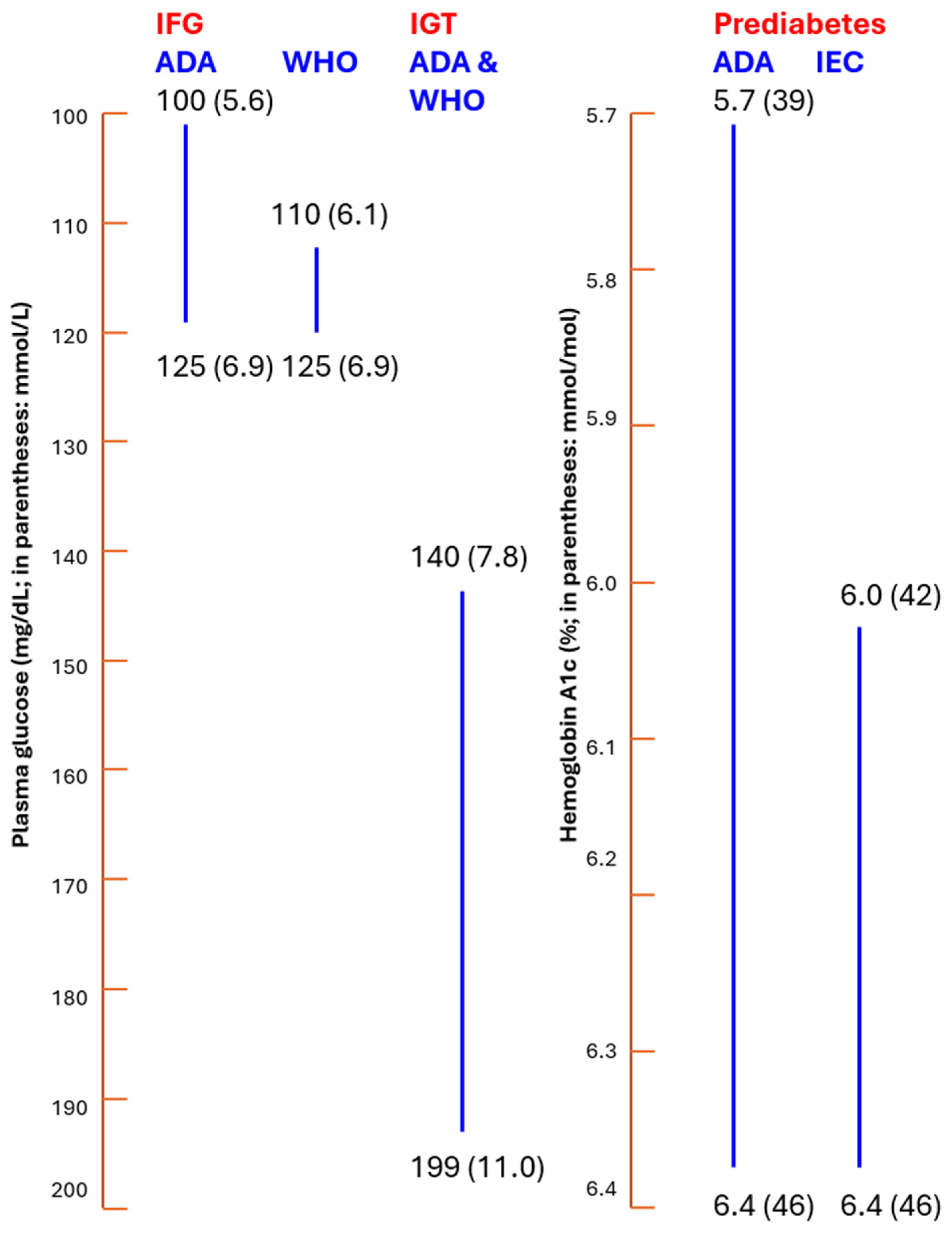 - Unnikrishnan, R.; Shaw, J.E.; Chan, J.C.N.; Wild, S.H.; Peters, A.L.; Orrange, S.; Roden, M.; Mohan, V. Prediabetes. Nat. Rev. Dis. Primers 2025, 11, 49. [Google Scholar] [CrossRef] [PubMed]