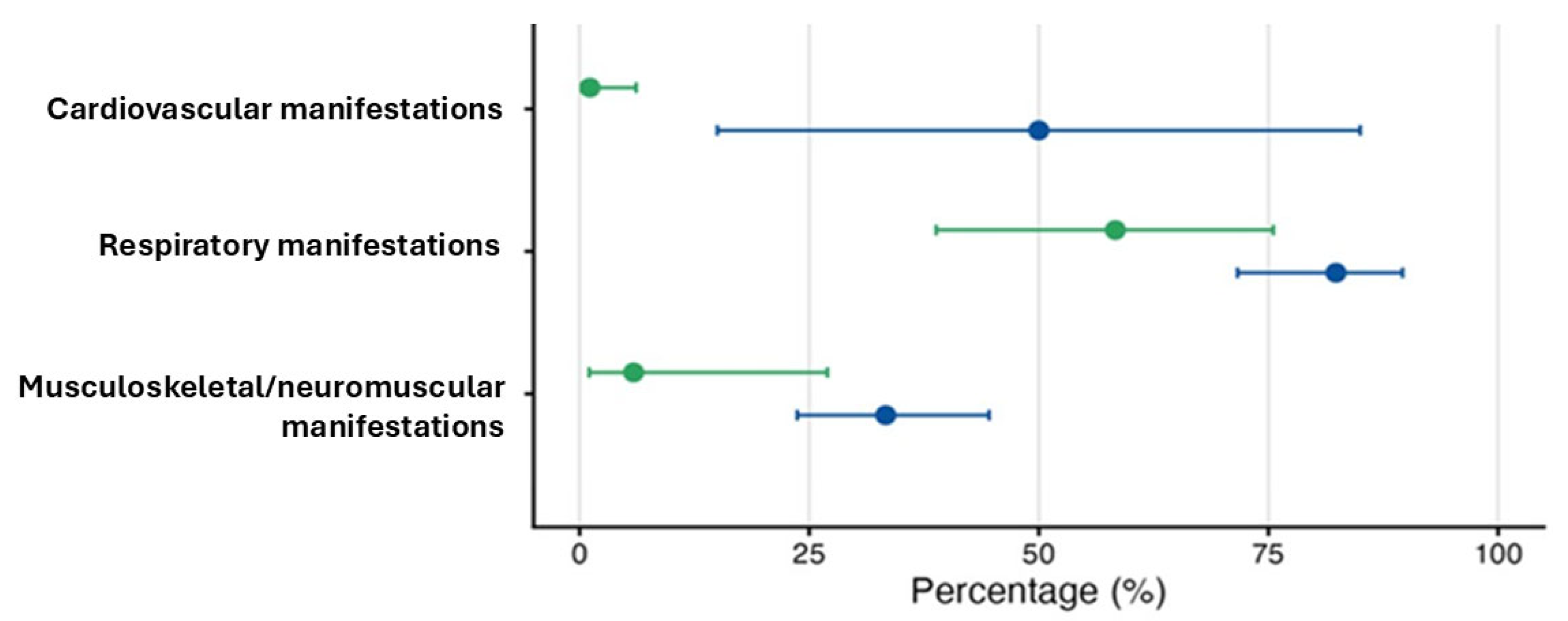 - Verma, A.; Naidu, S.V.; Sulthana, H.; Ullah, A.; Shabil, M.; Sah, R.; Mehta, R.; Jan, A.; Ain, N.U.; Rahim, A.; et al. Musculoskeletal manifestations in post-acute sequelae of SARS-CoV-2 infection: A systematic review and meta-analysis. Front. Public Health 2025, 13, 1662953. [Google Scholar] [CrossRef]