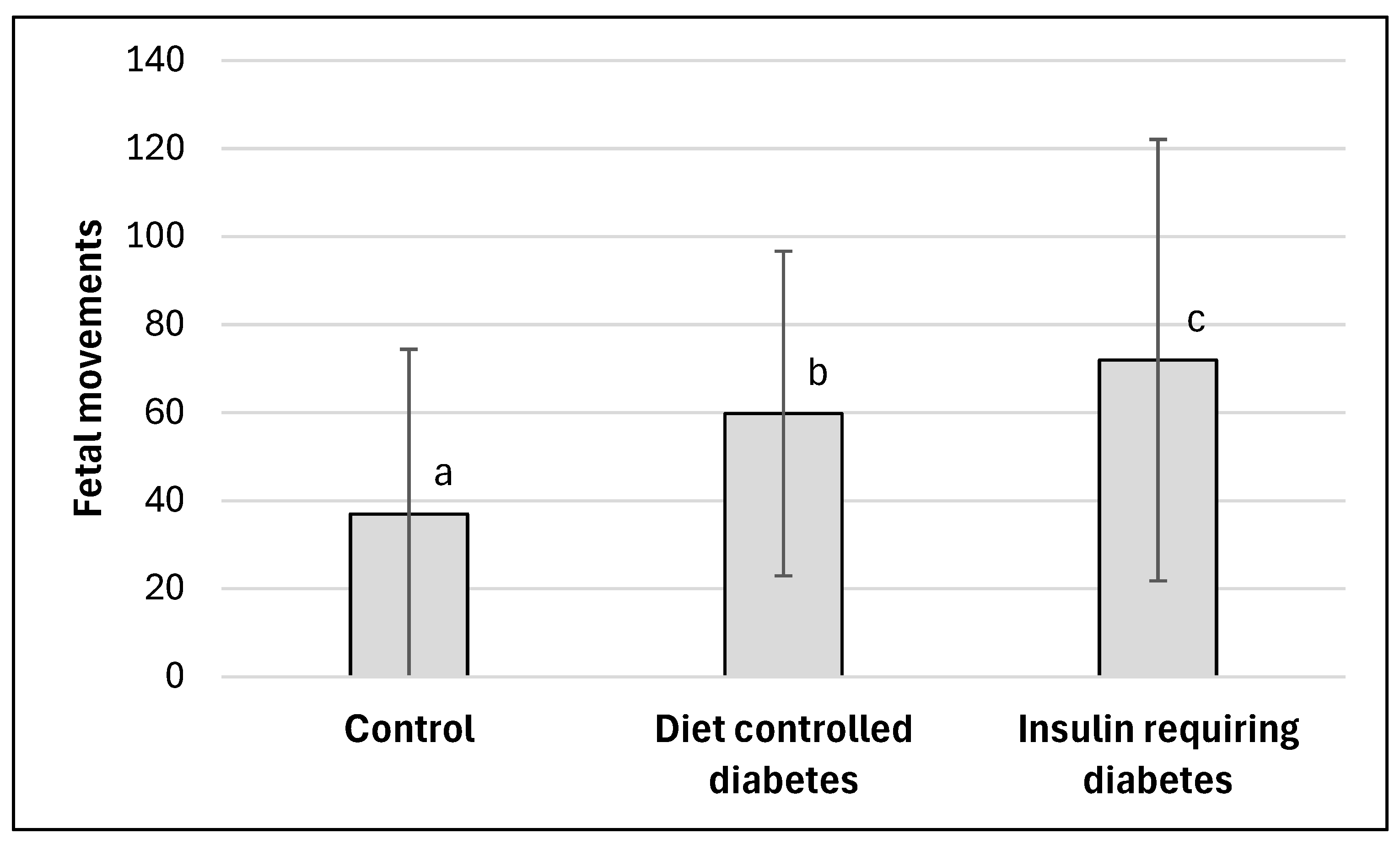 34]. The interpretation of this finding requires caution, especially in light of the heterogeneous and sometimes contradictory evidence available in the literature. In GDM, prior studies have not consistently demonstrated increased fetal motor activity; some report no significant differences in movement frequency [