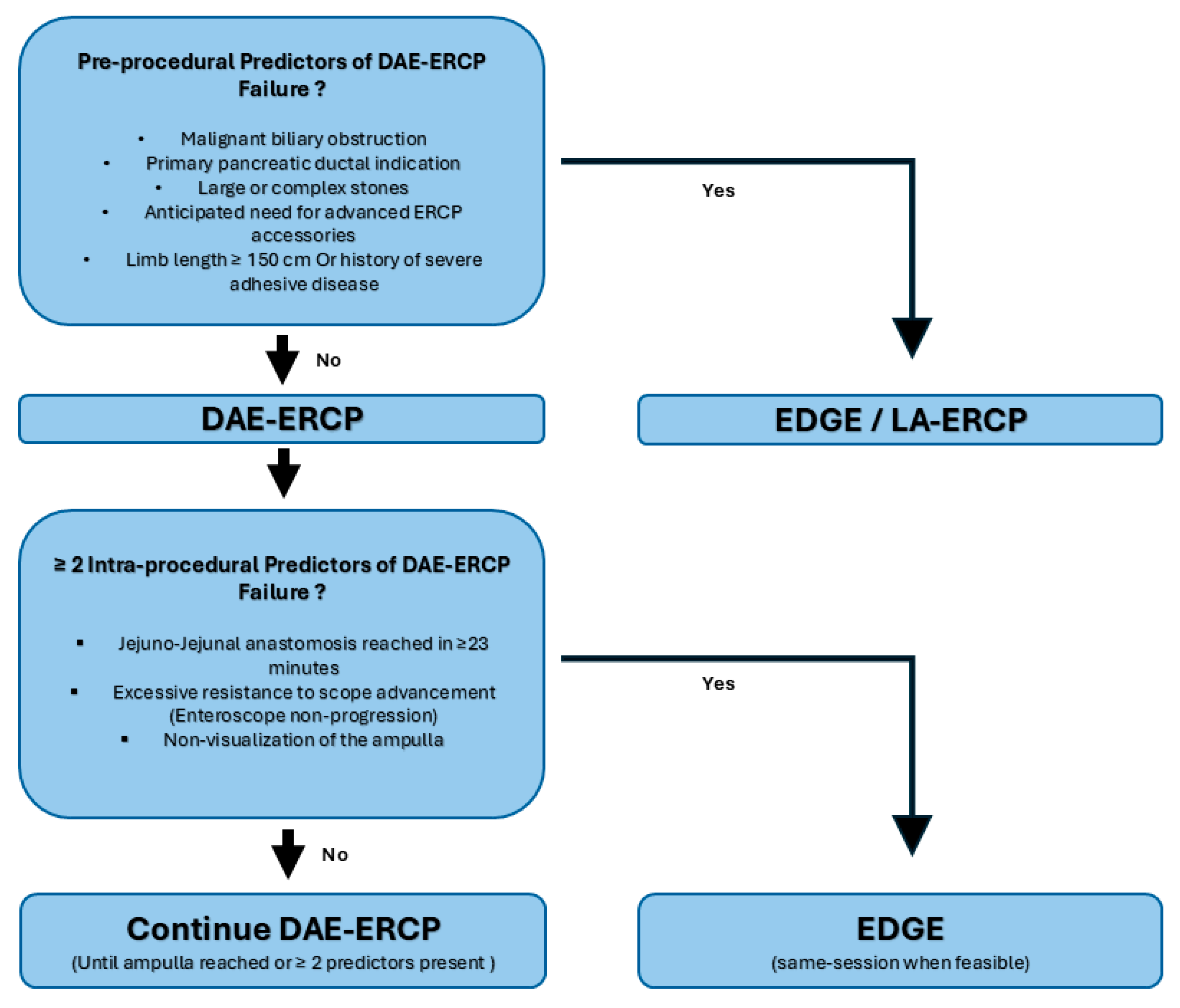 APA StyleKadkhodayan, K., Hussain, A., Chandan, S., Irani, S., Mohamad Khaled, A., Abbasi, A., Arain, M., Cosgrove, N., Hayat, M., Jain, D., Pathak, S., Yang, D., Khan, Z., Rosales, A., & Muhammad, H. K. (2026). Intra-Procedural Real-Time Predictors of Failure in Patients with Roux-en-Y Gastric Bypass Undergoing Double-Balloon Assisted ERCP: Is There an Optimal Time to Cross-Over to EUS-Directed Transgastric ERCP? A Prospective Single-Center Study. Journal of Clinical Medicine, 15(2), 765. https://doi.org/10.3390/jcm15020765