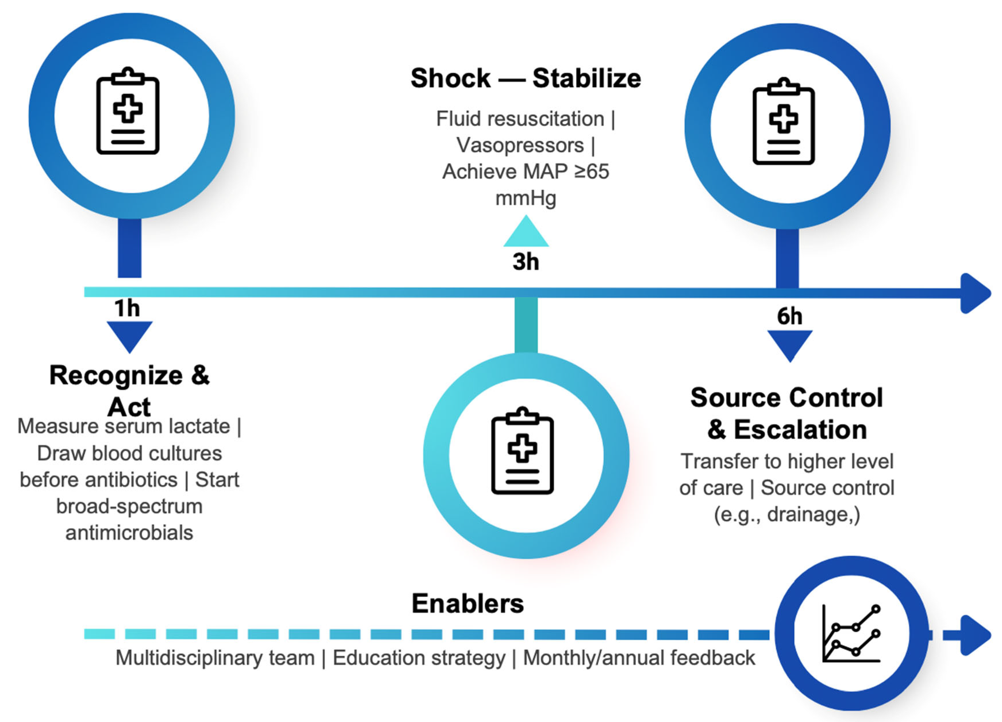 - Ford, J.S.; Morrison, J.C.; Kyaw, M.; Hewlett, M.; Tahir, P.; Jain, S.; Nemati, S.; Malhotra, A.; Wardi, G. The Effect of Severe Sepsis and Septic Shock Management Bundle (SEP-1) Compliance and Implementation on Mortality Among Patients with Sepsis: A Systematic Review. Ann. Intern. Med. 2025, 178, 543–557. [Google Scholar] [CrossRef]