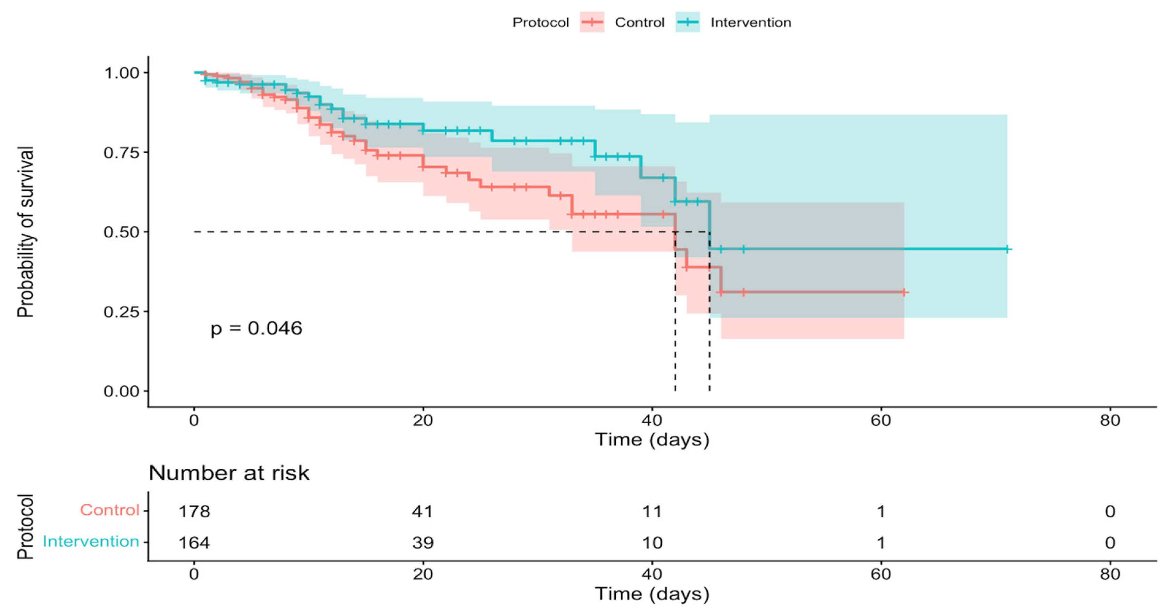 | Intervention Protocol | 142 (50.7) | 22 (35.5) | 0.53 (0.29–0.94) | 0.042 |