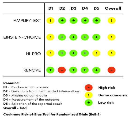- Sterne, J.A.C.; Savović, J.; Page, M.J.; Elbers, R.G.; Blencowe, N.S.; Boutron, I.; Cates, C.J.; Cheng, H.Y.; Corbett, M.S.; Eldridge, S.M.; et al. RoB 2: A revised tool for assessing risk of bias in randomised trials. BMJ 2019, 366, l4898. [Google Scholar] [CrossRef] [PubMed]
