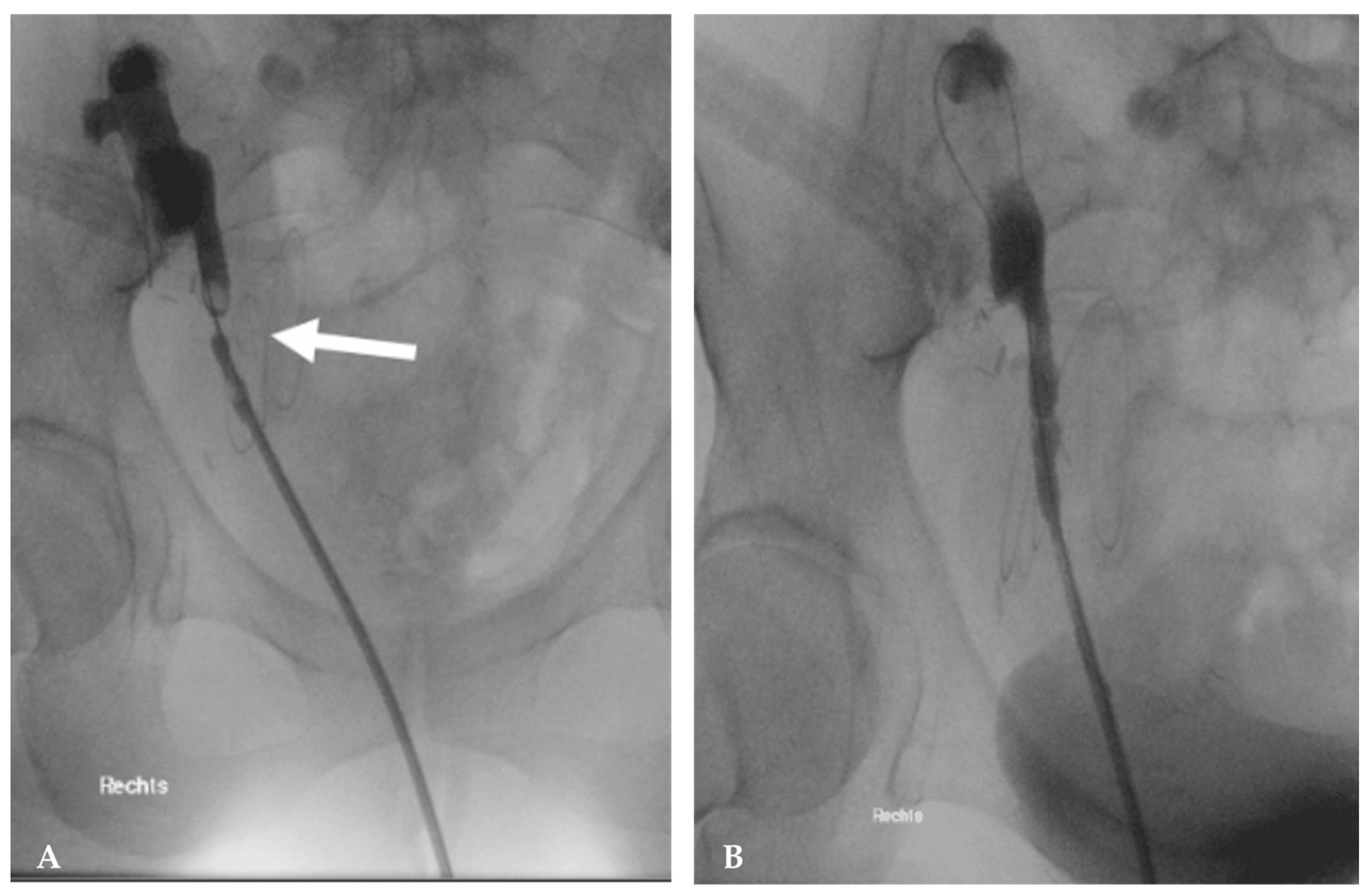 - Deininger, S.; Nadalin, S.; Amend, B.; Guthoff, M.; Heyne, N.; Königsrainer, A.; Strohäker, J.; Stenzl, A.; Rausch, S. Minimal-invasive management of urological complications after kidney transplantation. Int. Urol. Nephrol. 2021, 53, 1267–1277. [Google Scholar] [CrossRef] [PubMed]