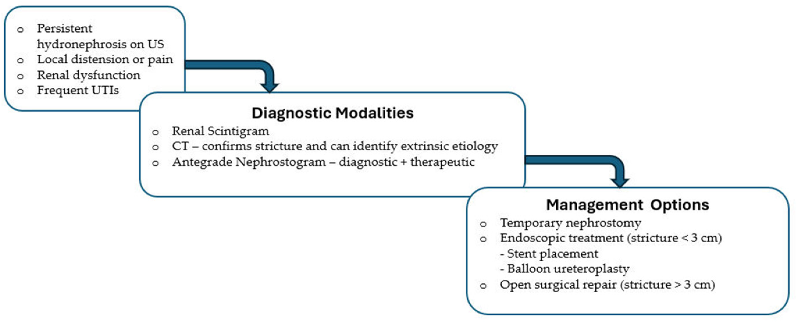 - Haberal, H.B.; Marco, B.B.; Donmez, M.I.; Pecoraro, A.; Piana, A.; Prudhomme, T.; López-Abad, A.; Breda, A.; Territo, A.; The EAU Young Academic Urologists (YAU) Kidney Transplantation Working Group. A Systematic Review of Outcomes of Redo Ureteroneocystostomy Subsequent to Kidney Transplantation in Pediatric Recipients. Int. J. Urol. 2025, 32, 1379–1385. [Google Scholar] [CrossRef]