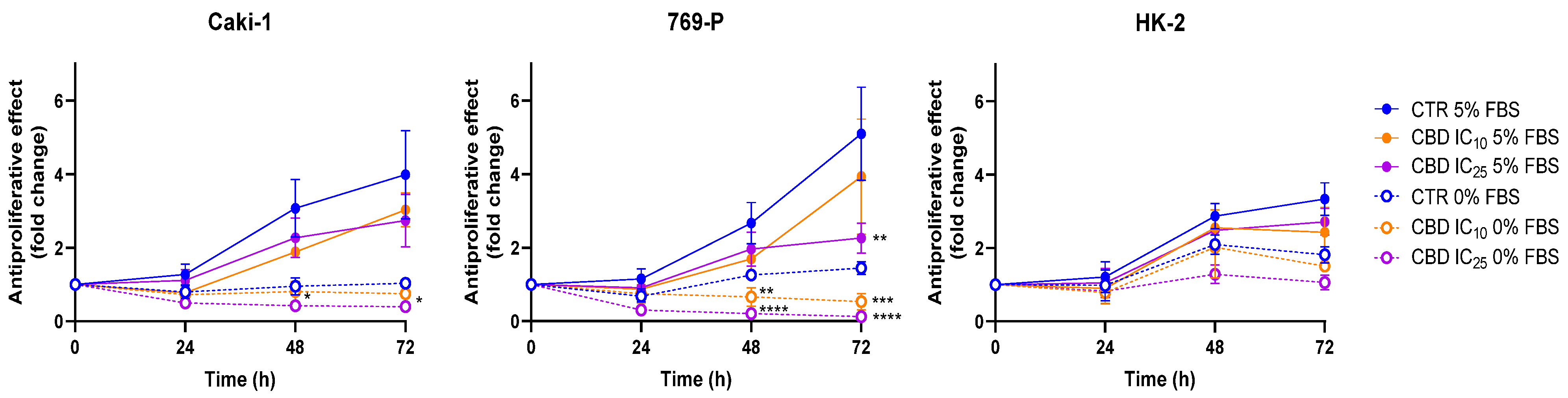 3.2. CBD Inhibits RCC Proliferation Without Tumor Selectivity