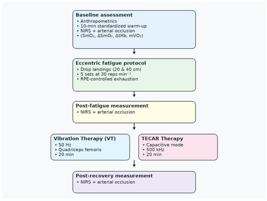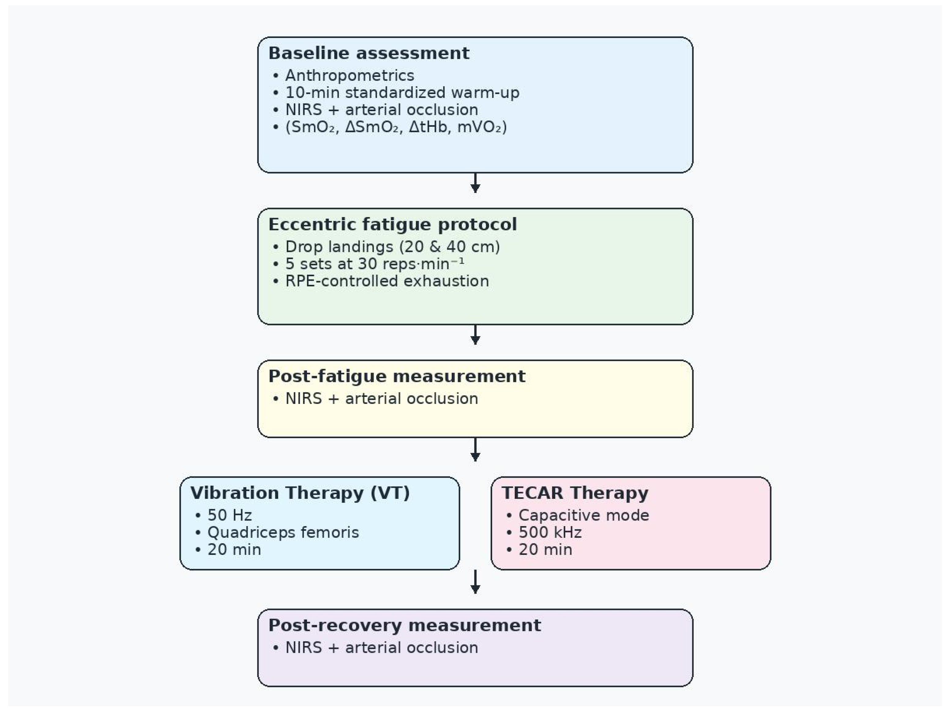 Oleksy, Ł.; Mika, A.; Daszkiewicz, M.; Sopa, M.; Szczudło, M.; Kuchciak, M.; Stolarczyk, A.; Adamska, O.; Reichert, P.; Dzięcioł-Anikiej, Z.; et al. Evaluation of Muscle Oxygenation Responses to Eccentric Exercise and Recovery Enhancement Using Capacitive–Resistive Electric Transfer and Vibration Therapy. J. Clin. Med. 2026, 15, 794. https://doi.org/10.3390/jcm15020794